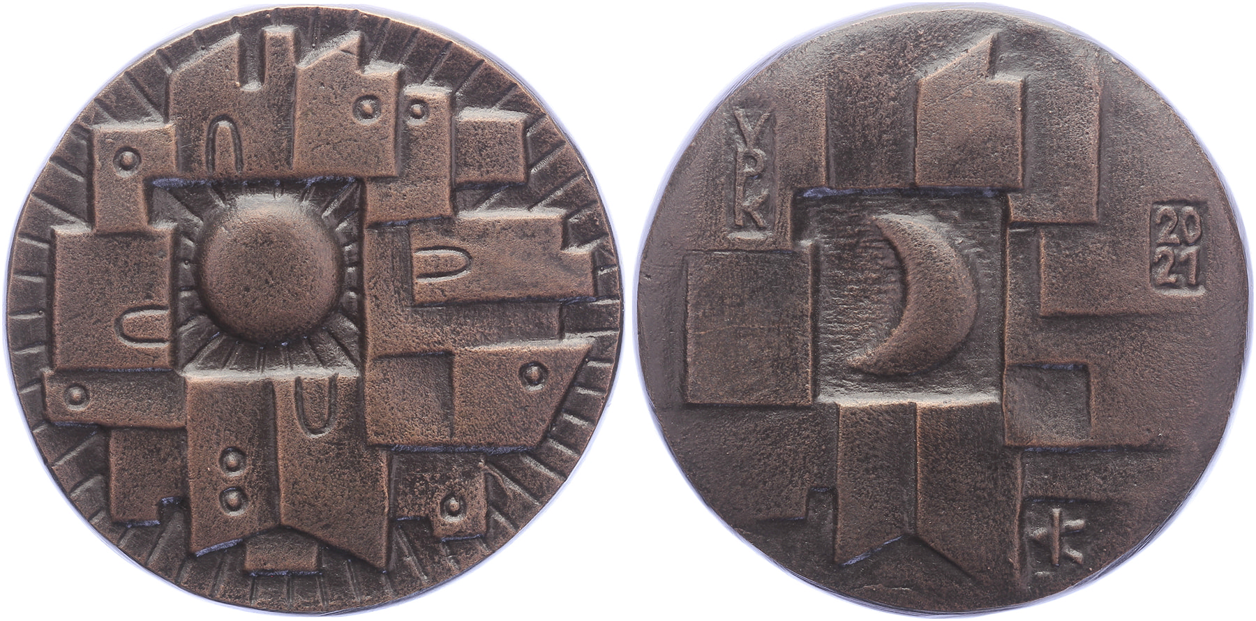 2021 Stad bij dag en nacht. Symbolische weergave stad overdag. / Symbolische weergave stad bij nacht. Æ gegoten 77. Inge Claesen. Prachtig.