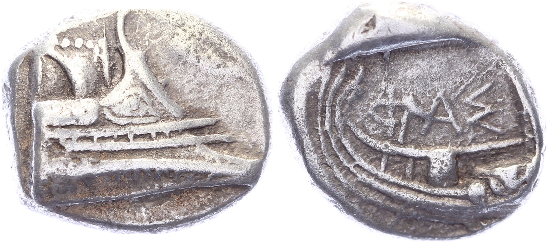 Circa 400 BC. AR Third Stater [3,40 gm, 14,3 mm]. Prow of galley right / ΦAΣ, stern of galley left within incuse square. Heipp-Tamer Series 5, Emission 3, 72. VF. Purchased from Tom Vossen, November 2018 (Tienen coin fair)