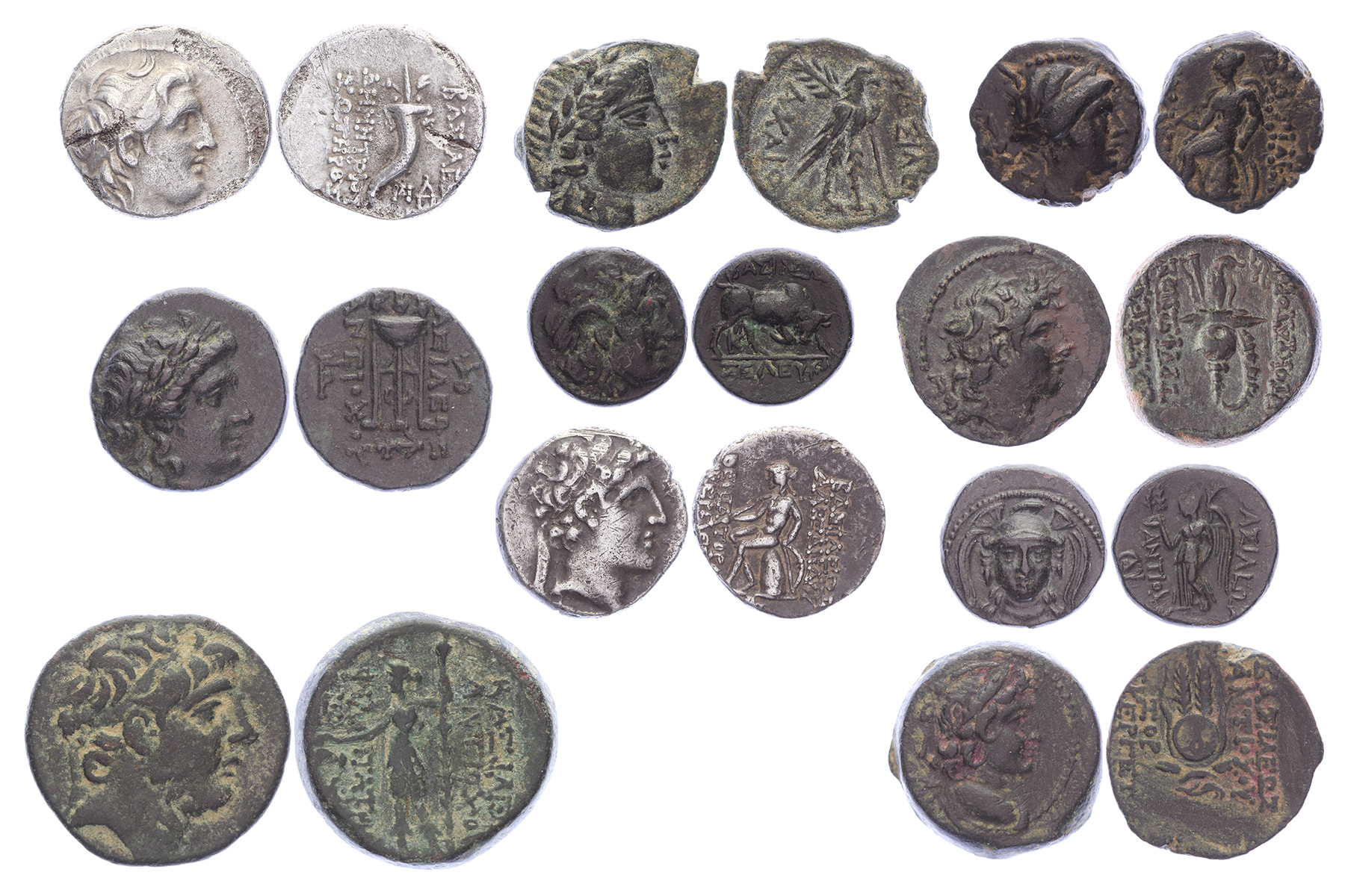 Lot (10) Seleukid Kingdom. Gevarieerd lot met munten afkomstig van diverse keizers. Diverse jaartallen en kwaliteiten. Uitgebreide beschrijving van de munten bij lot ingesloten. / Comprehensive description accompanies this lot.