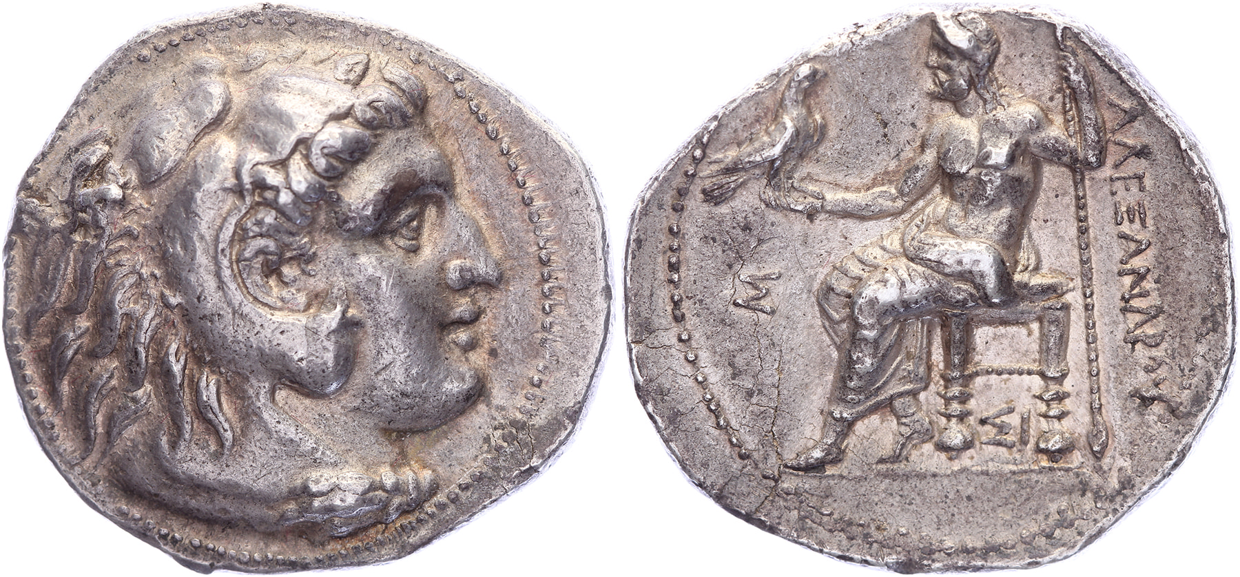 AR Tetradrachm [17,13 gm, 28,2 mm]. In the name and types of Alexander III of Macedon. Sidon mint. Struck RY 18 of Abdalonymos (316/5 BC). Head of Herakles right, wearing lion skin / AΛEΞANΔPOY, Zeus Aëtophoros seated left; Σ to left, ΣI below throne. Price 3504; Newell, Sidon 50. Toned gVF.Purchased from E. Datema, January 2019 (Berkel Enschot coin fair)