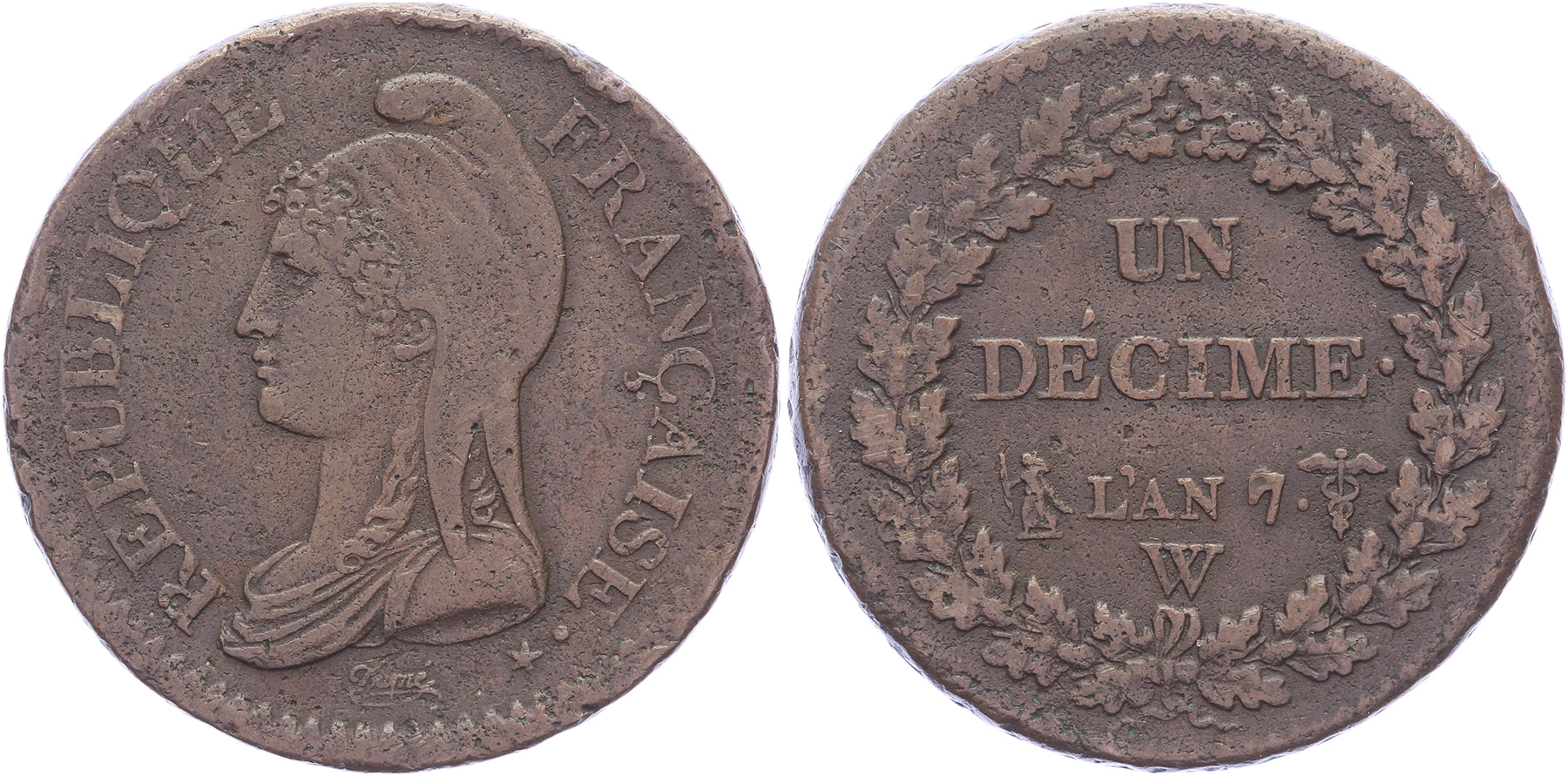 Décime l’An 7W. Gad. 187; KM 644.1. VF.