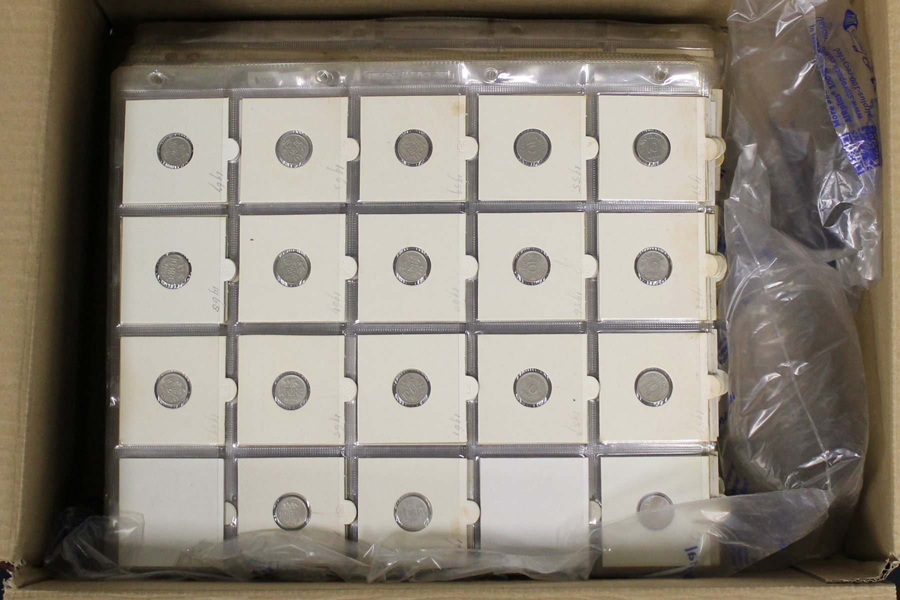 Kartonnen doos met 60 x 20-vaks bladen eenvoudige wereldmunten.
