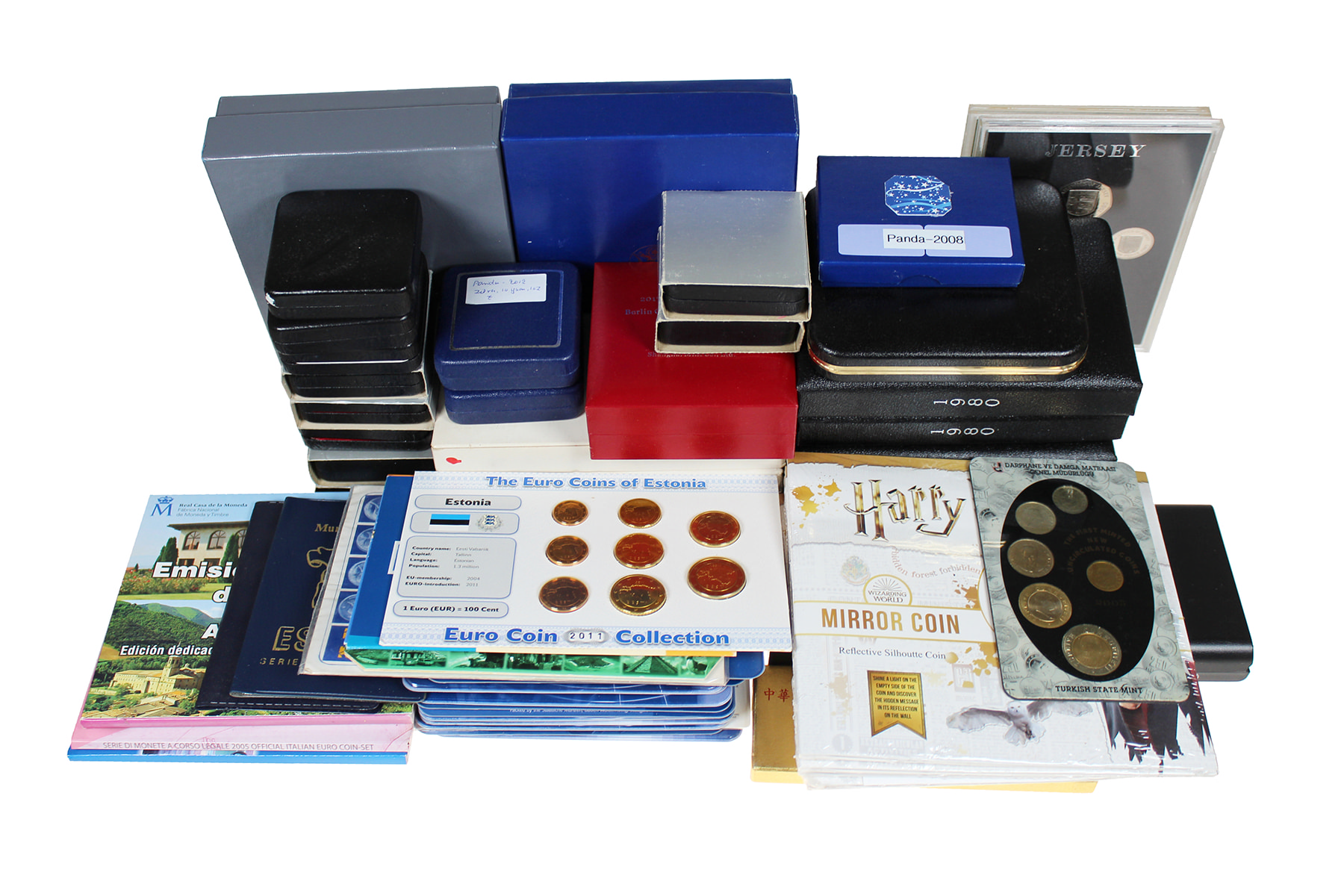 Grote doos proppievol allerlei landen, w.o. panda’s uit China, prestige sets Canada & USA; Olympische Spelen enz. enz. Veel zilver! Goed kijken.