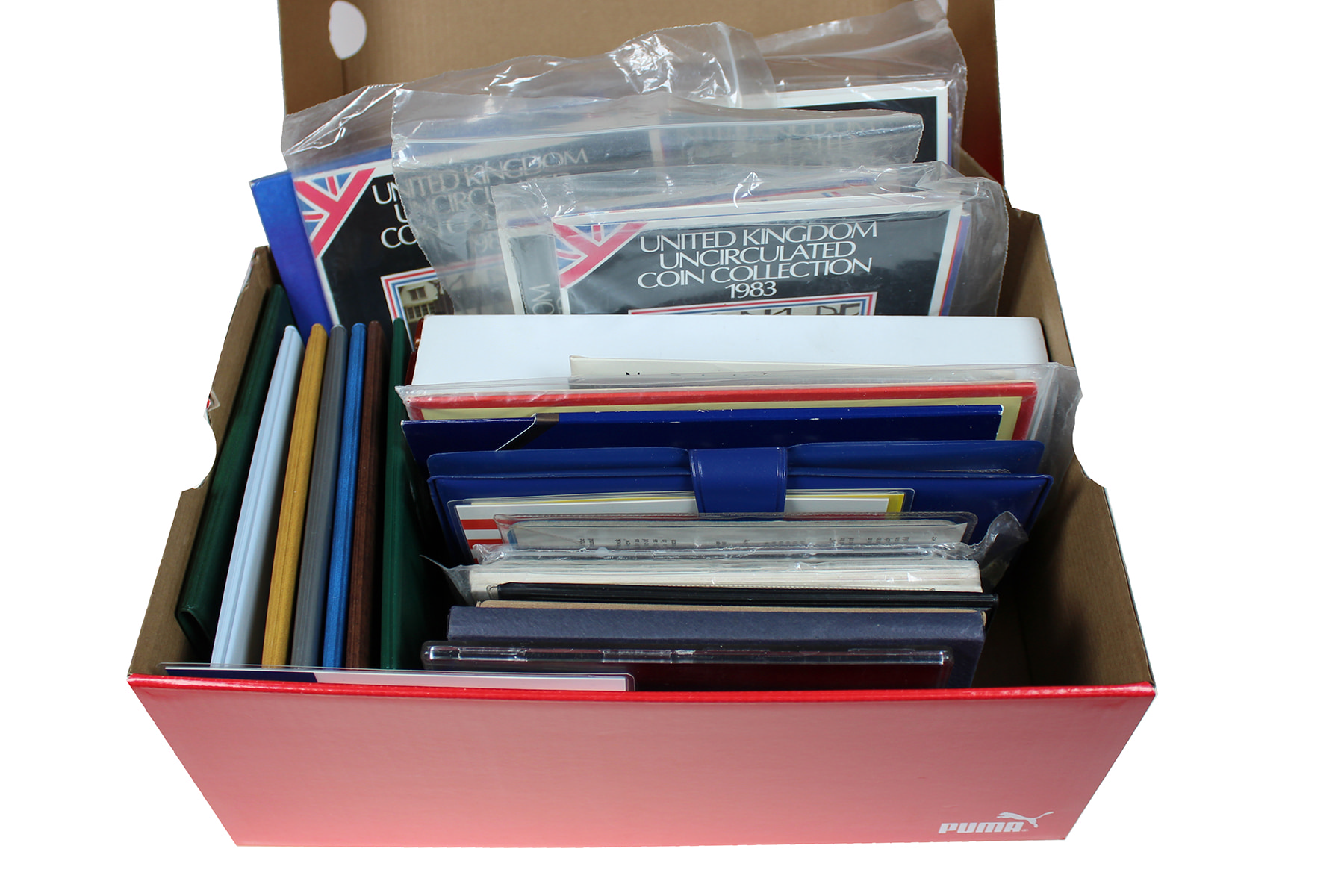 Doos met ca. 40 stuks buitenlandse muntsets.
