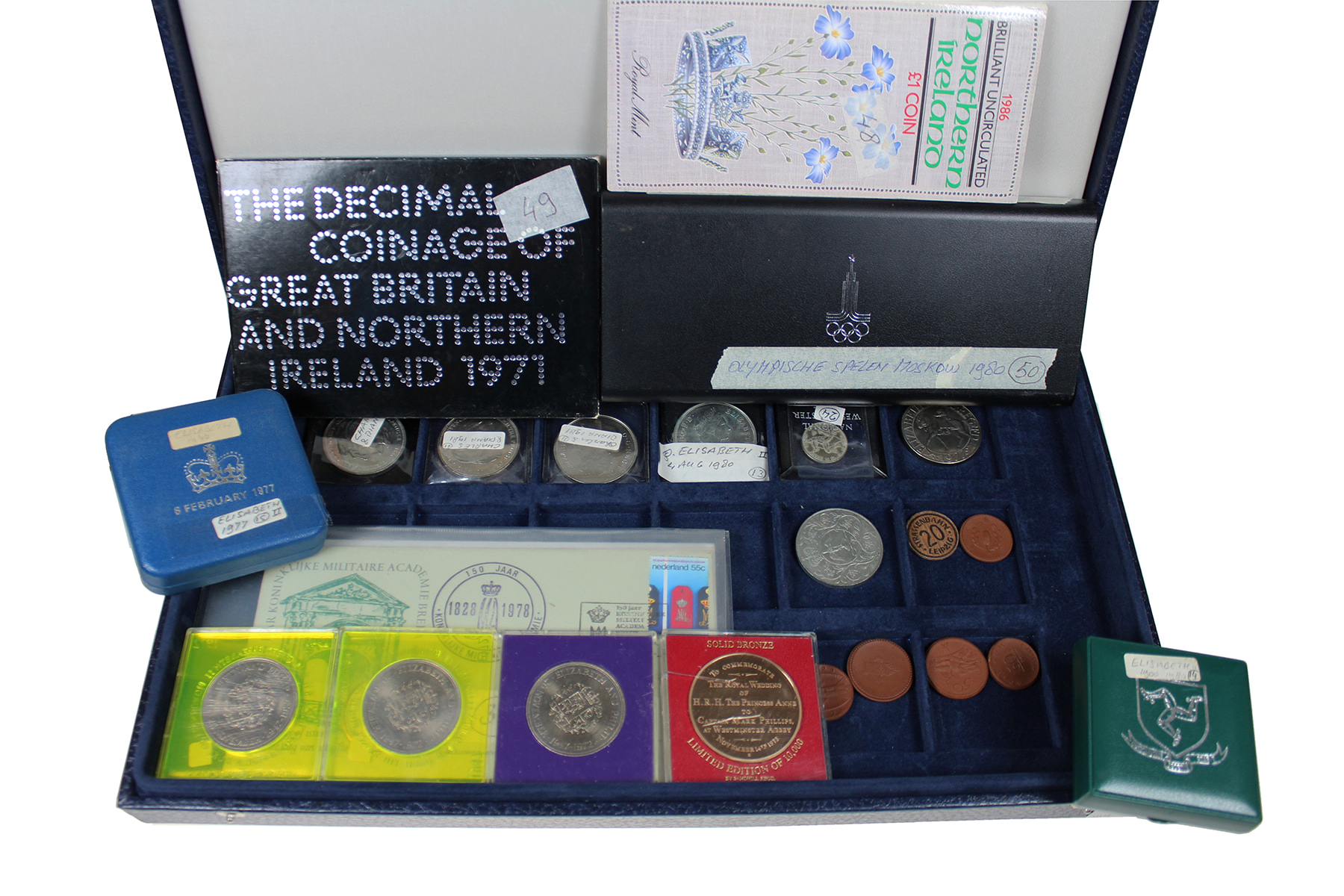 Luxe blauwe doos met allerlei voornamelijk moderne muntuitgiften, o.a. Olympiade Moskou 1980.