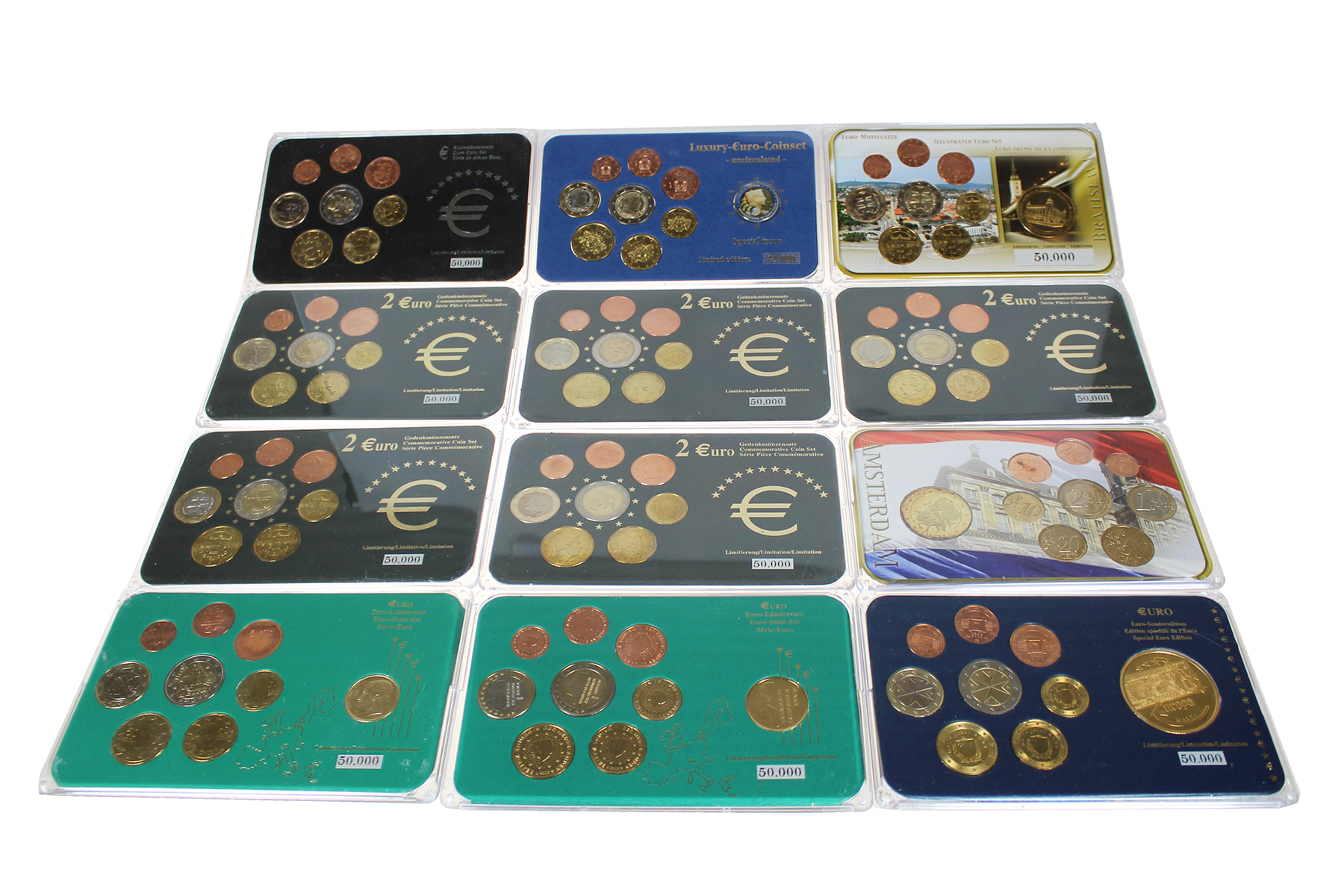 Kist met 12 eurosets van evenzoveel Europese landen.
