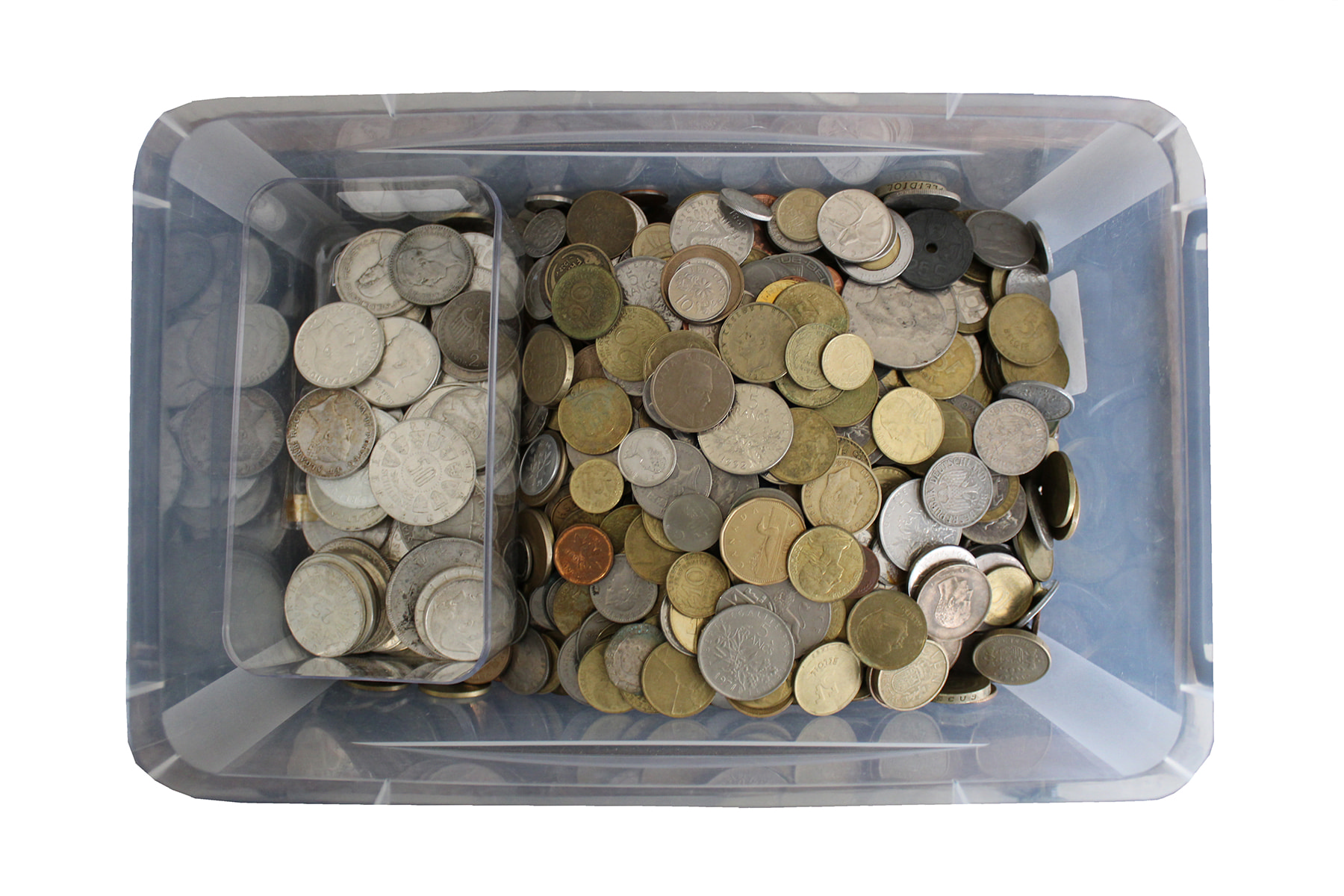 Kunststof bak met wereld kilogoed waarbij ook zilver! Ruim 13 kg.