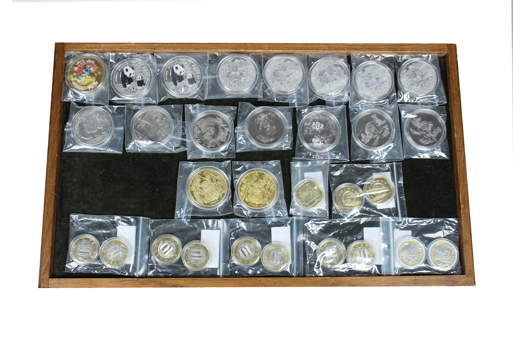 Lot China (30) modern coins: 5 Yuan Landscape (3); 10 Yuan Astrology (10) and Panda medals (15). Added: Zambia 1000 Kwacha 2014 Panda (2).
