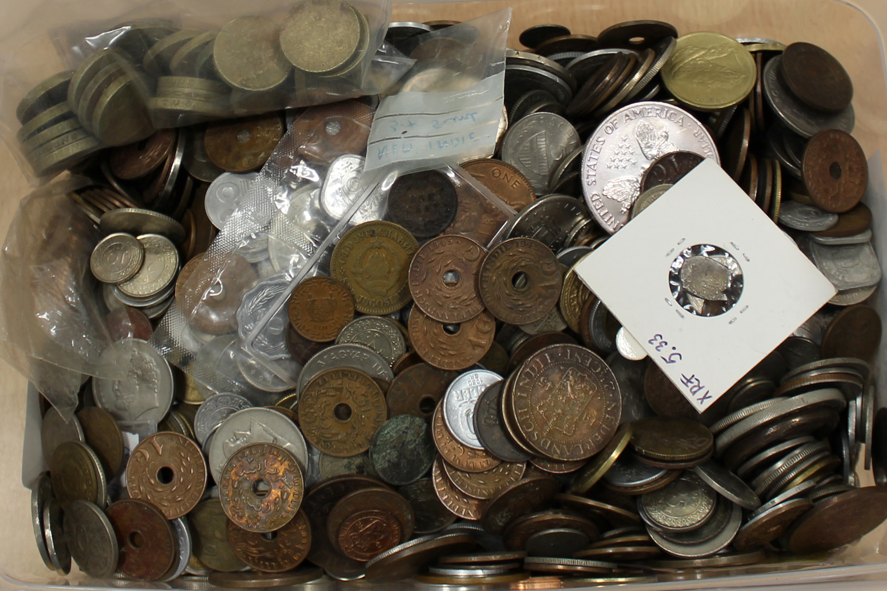 Plastic box iets betere wereldmunten; ook hier en daar wat zilver. 7½ kg.