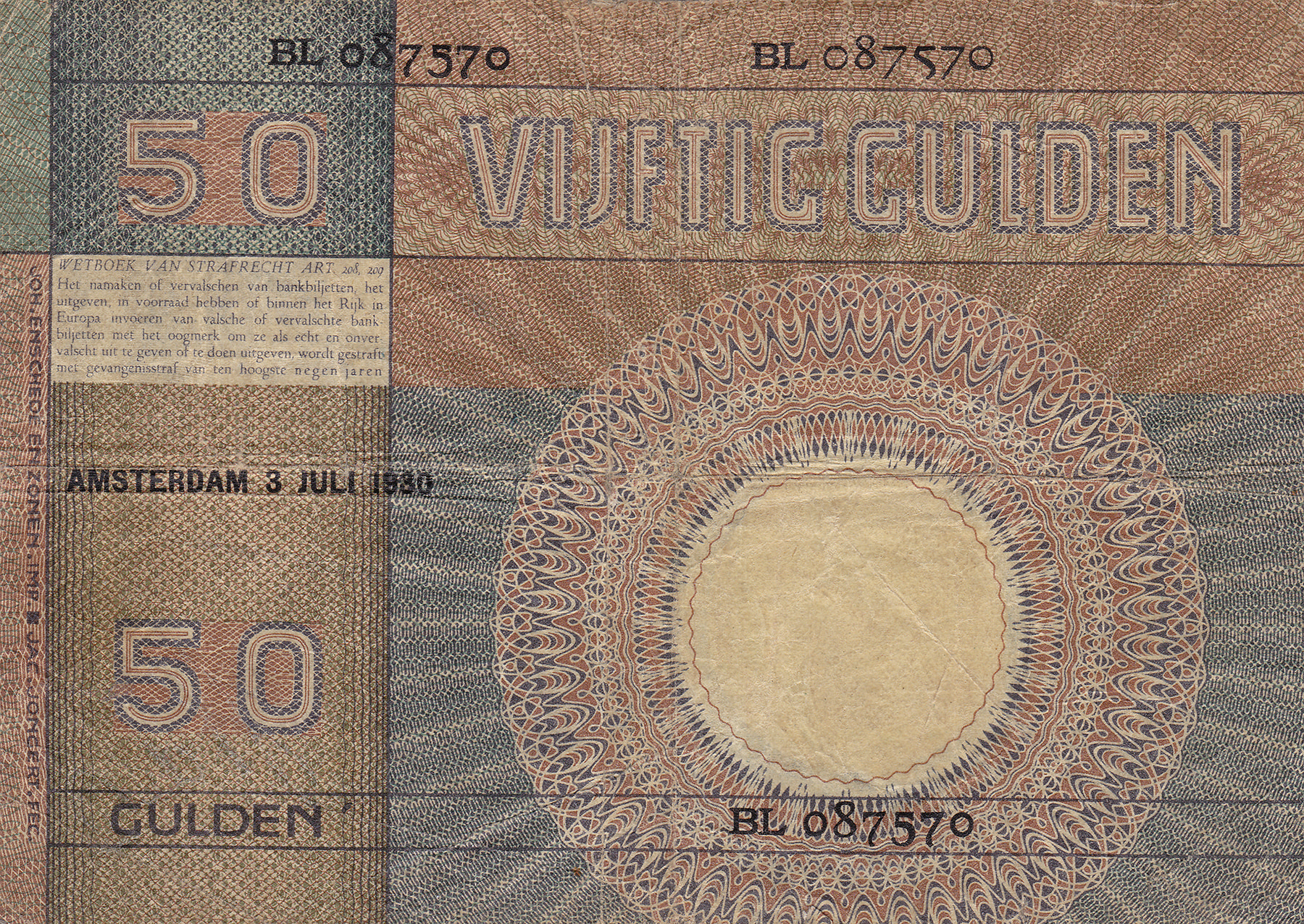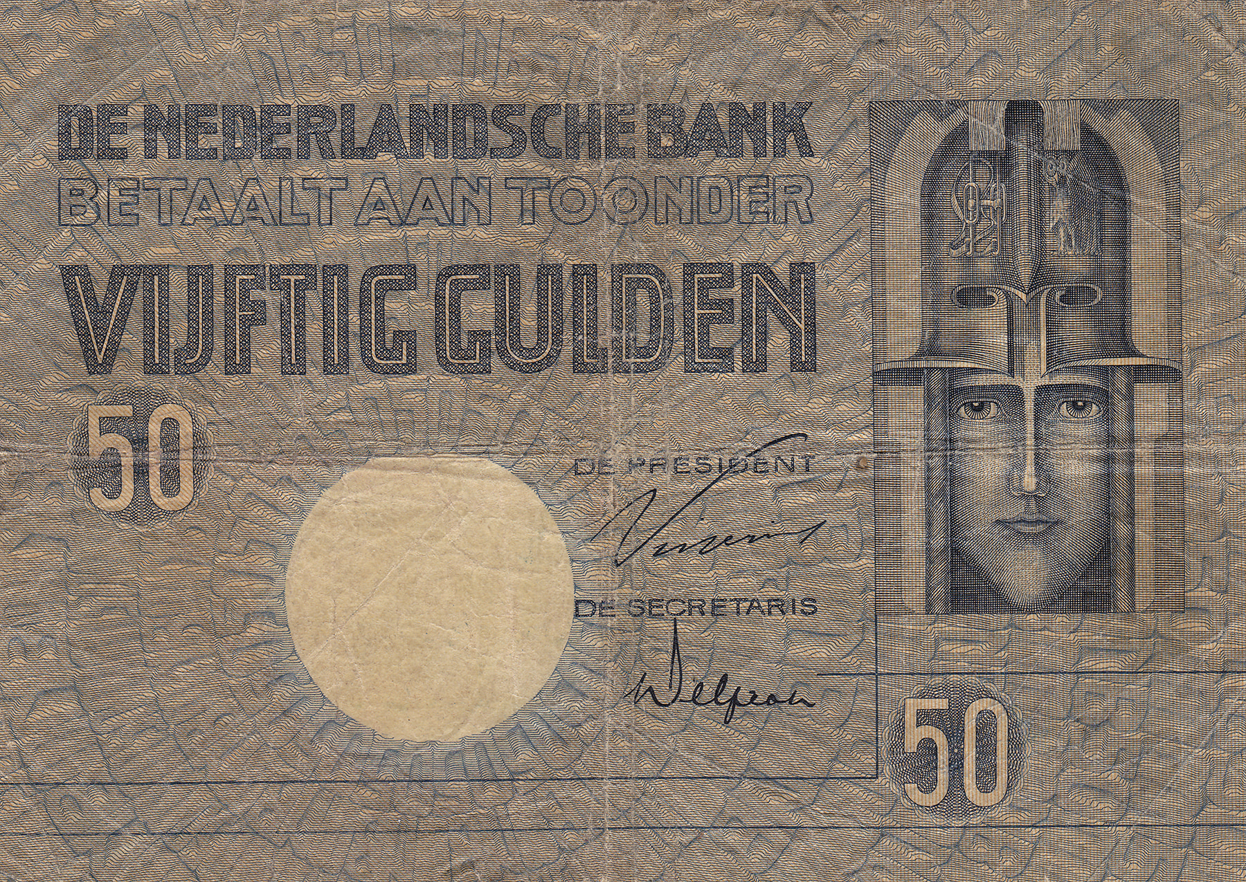 50 Gulden 1930 Minerva. Mev. 96-1b; PL 79.b [# BL 087570]. Amper fraai.