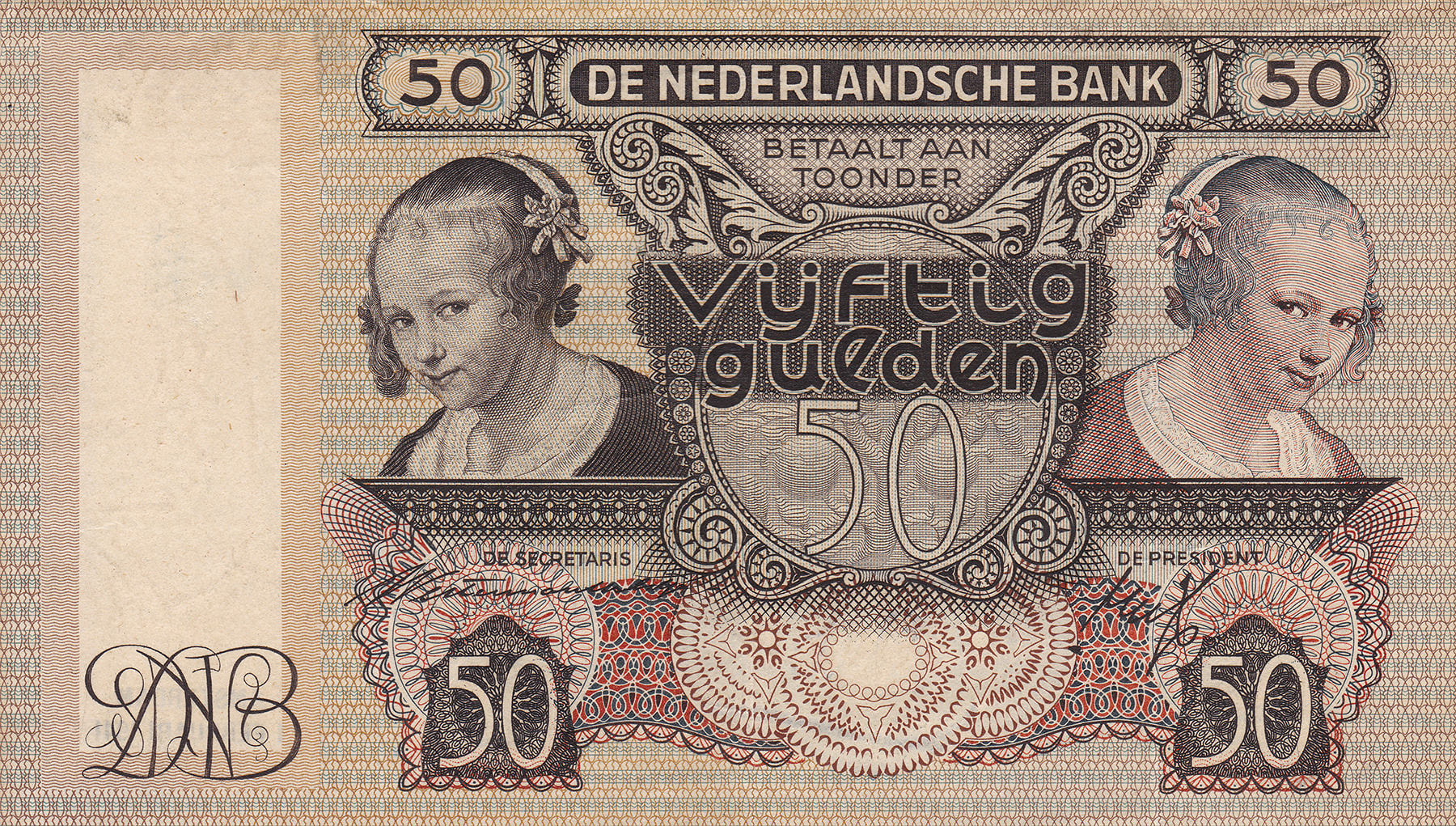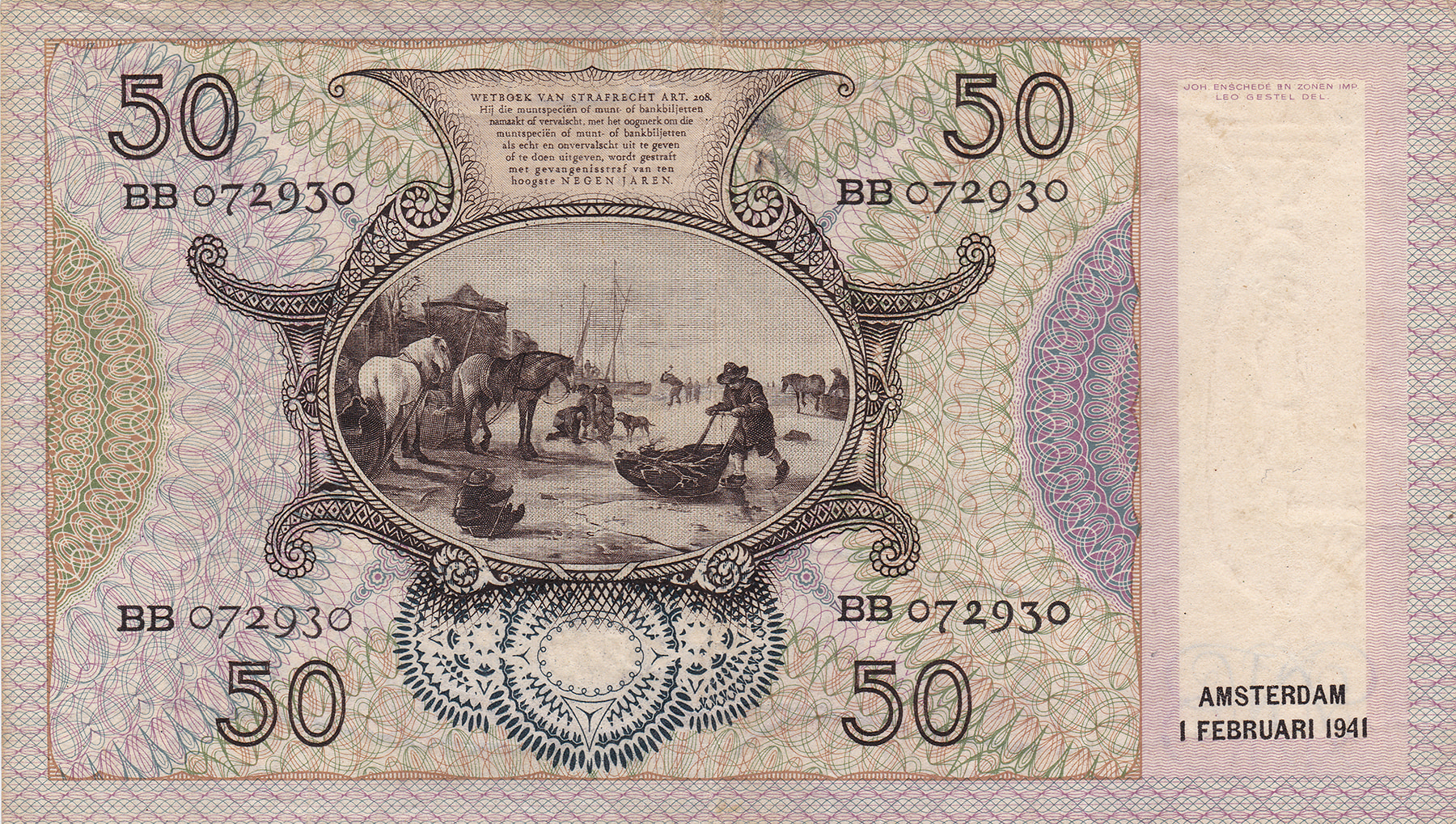50 Gulden 1941 Oestereetster. Mev. 97-1; PL 80.a [# BB 072930]. Vrijwel UNC.