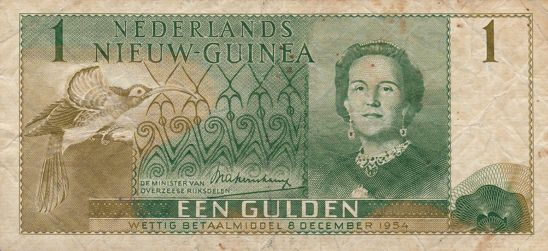 1 Gulden 1954. Sign. Kernkamp (NNG 2) 8-12-1954. PL NG 2.1a [# CA 022067]. Fraai.