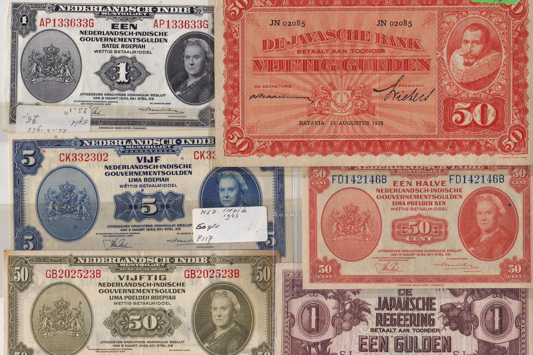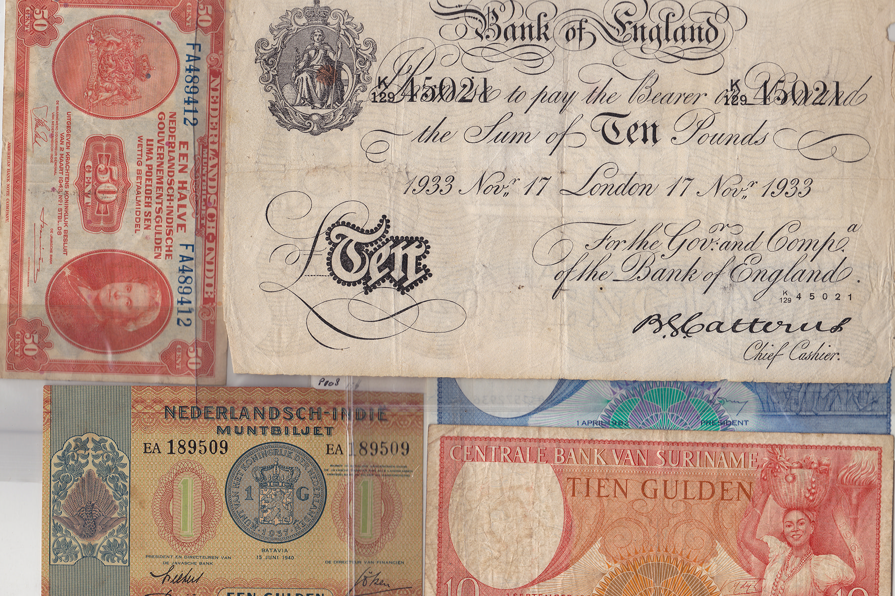 Lot (12) met kleine maar leuke collectie overzee bankbiljetten, o.a. Nederlands-Indië.