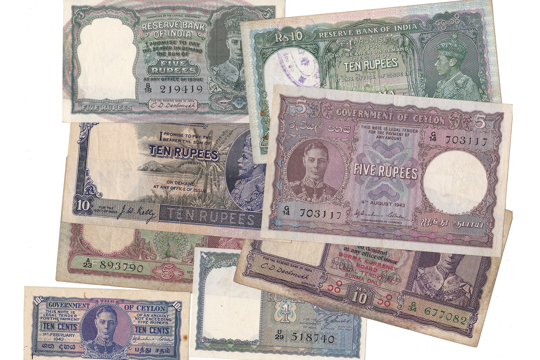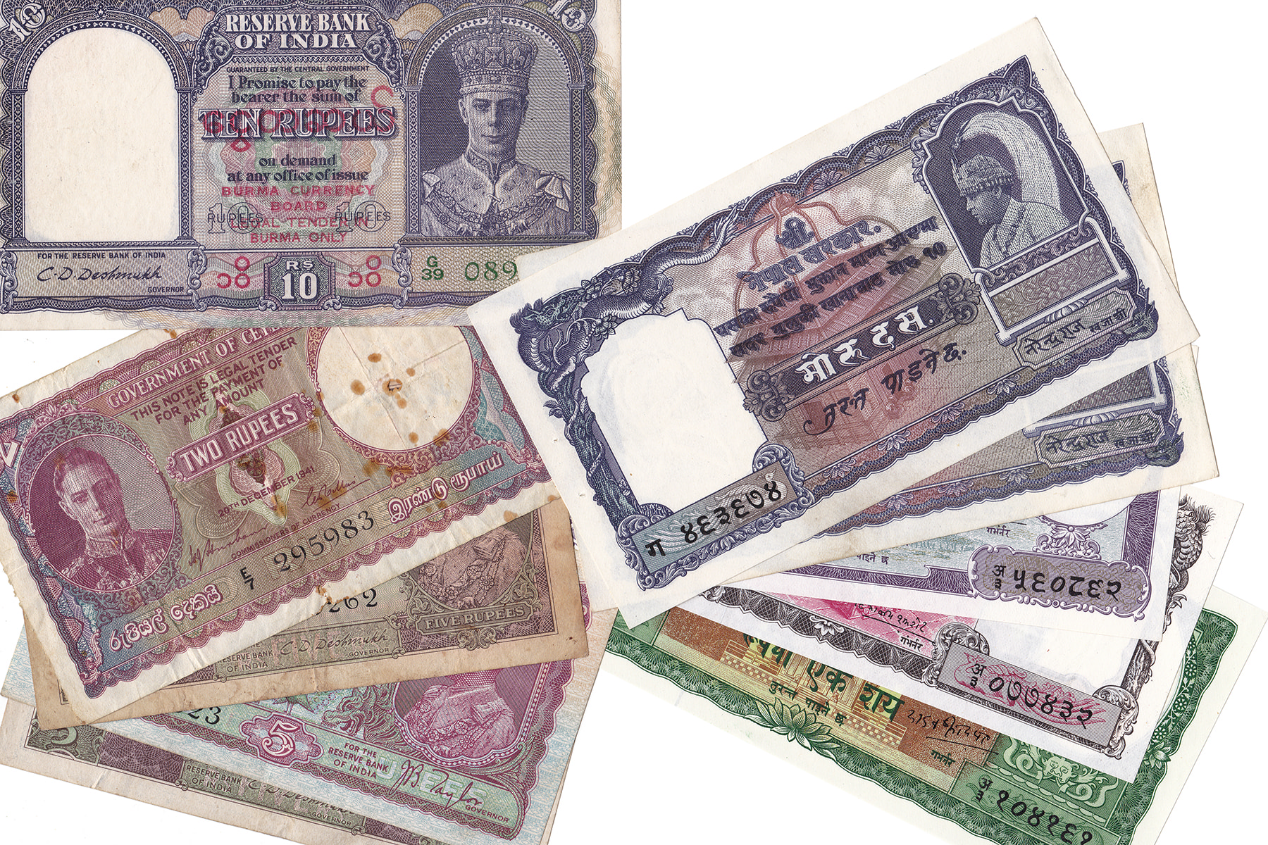 Lot (26) diverse landen met diverse denominaties en jaartallen. Waaronder ook enkele doubletten. Ceylon (Pick 16, 35, 36, 43), Birma (Pick 4, 5, 26, 28, 31), India from 1928 (Pick 14-18, 23-25) en Nepal (Pick 6, 9, 10, 15). Fine to almost UNC.