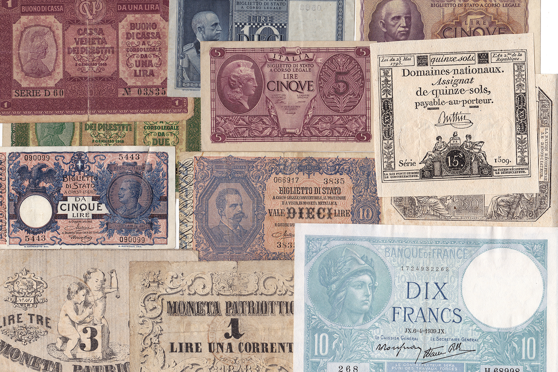 Collectie oud Europabiljetten van voornamelijk Frankrijk en Italië. 25 stuks.