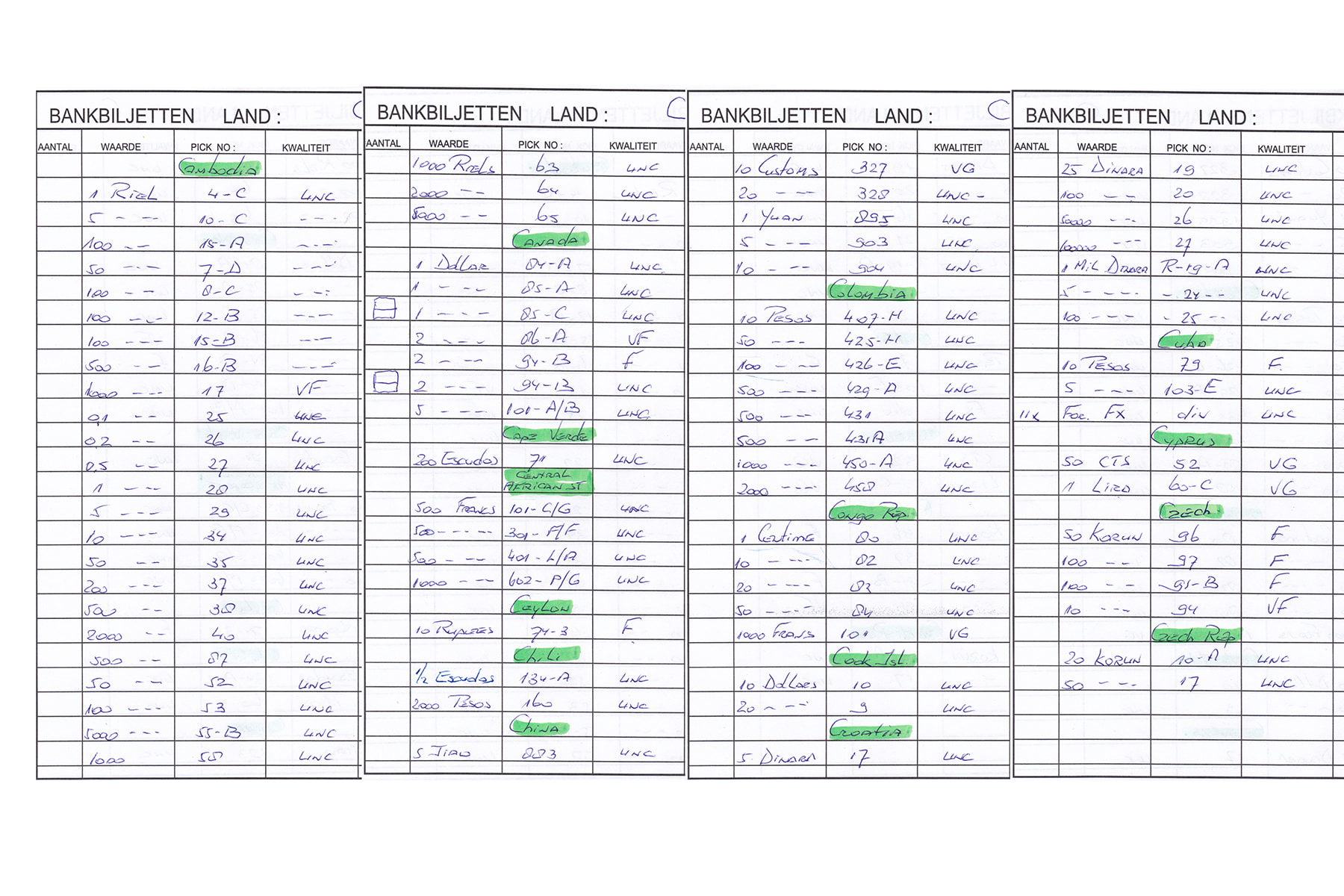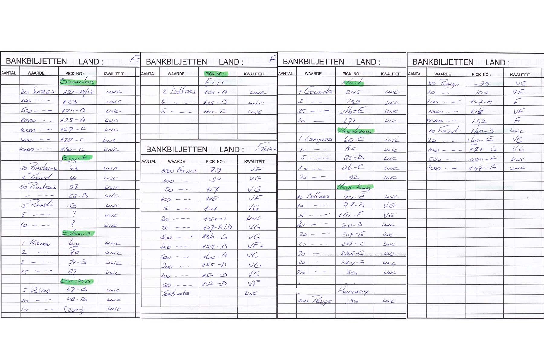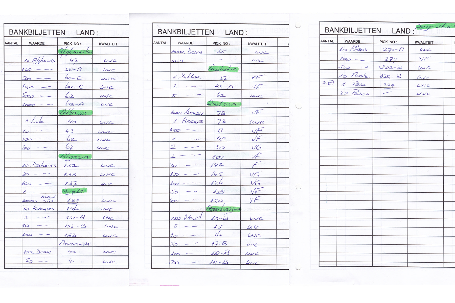 Zeven DAVO-albums bankbiljetten van Afghanistan tot Hongarije. Ca. 340 stuks. Veelal UNC. Lijst van Pick-nummers bijgesloten bij kavel.