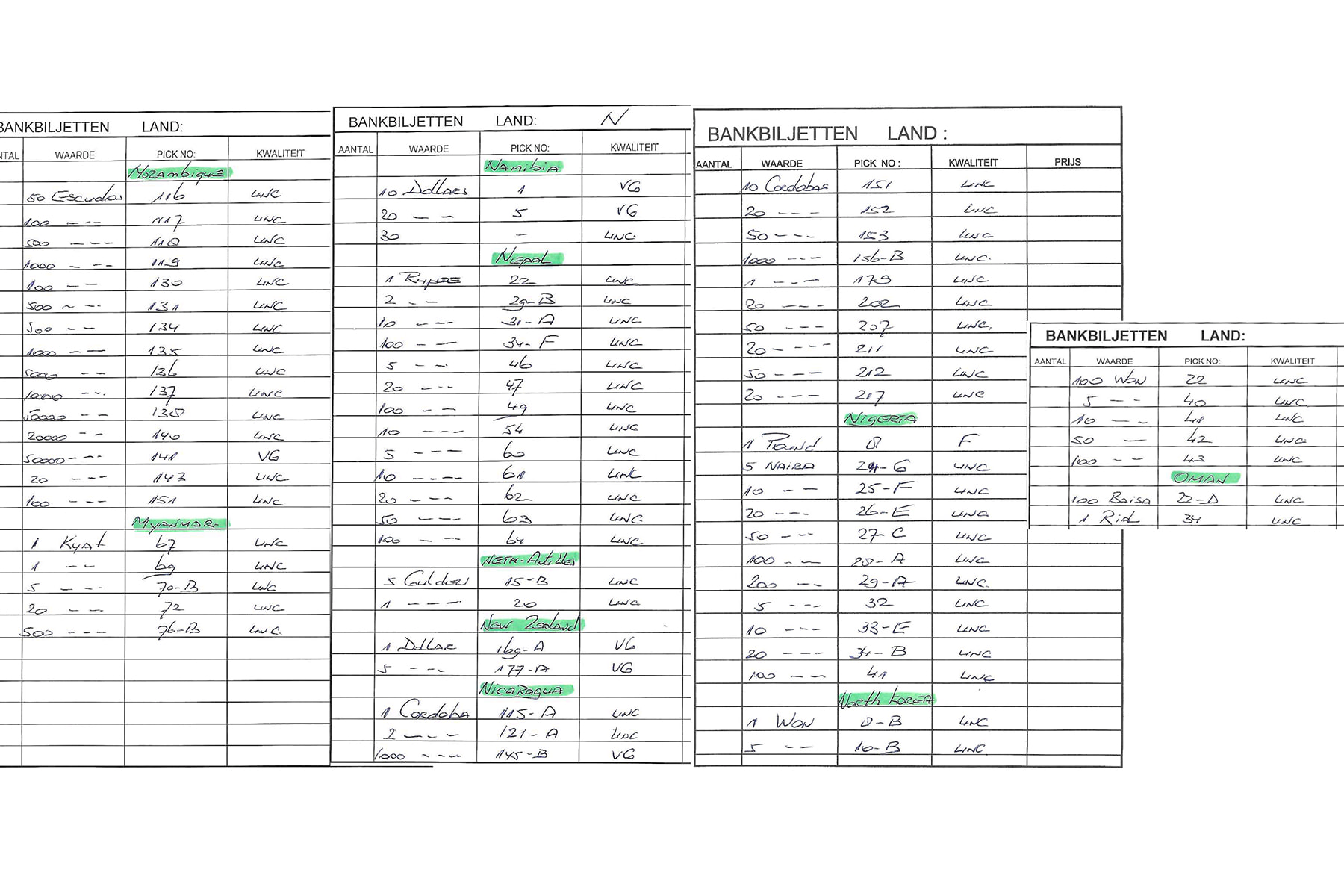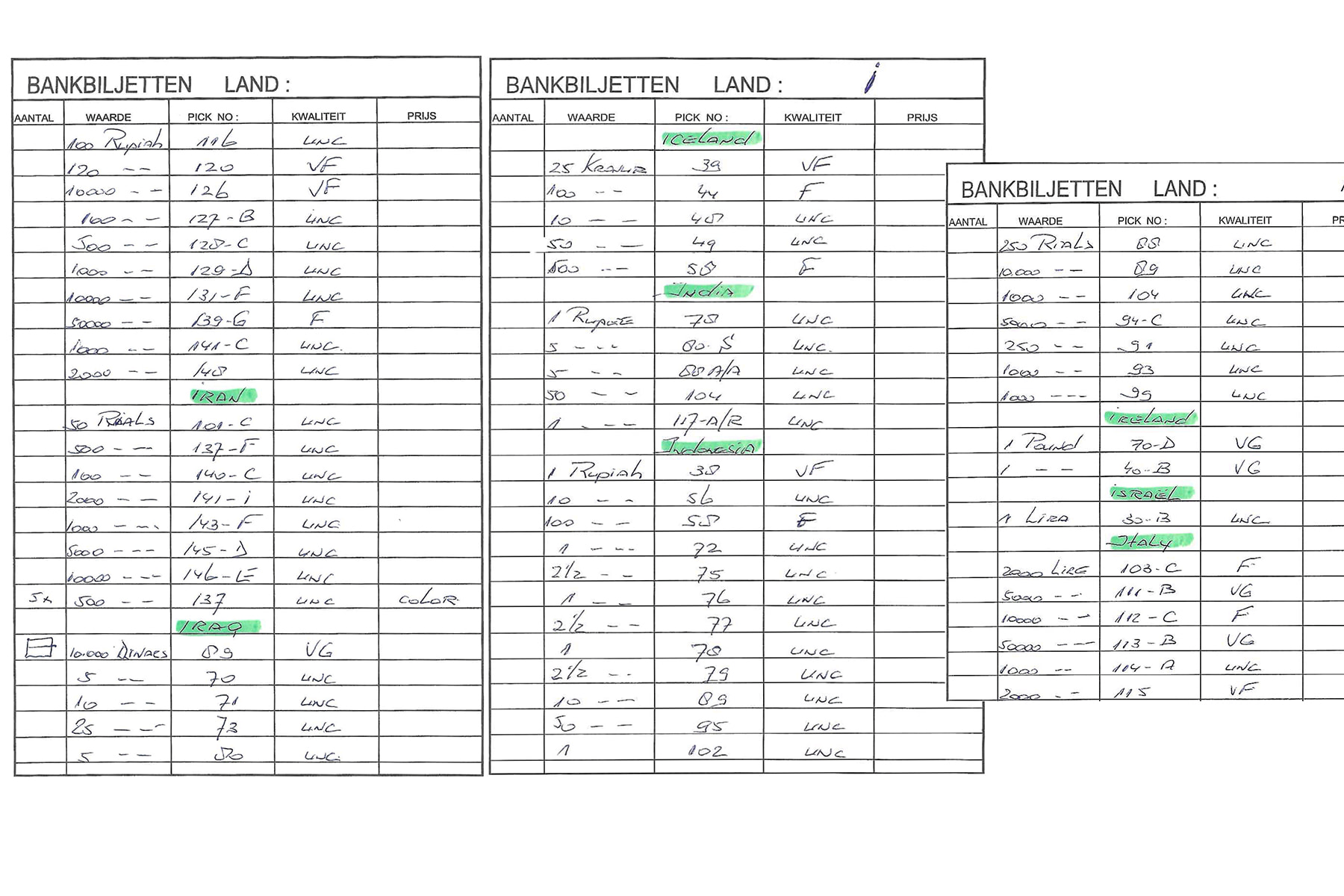 Zeven DAVO-albums bankbiljetten van IJsland tot Qatar. Ruim 370 stuks. Veelal UNC. Lijst van Pick-nummers bijgesloten bij kavel.