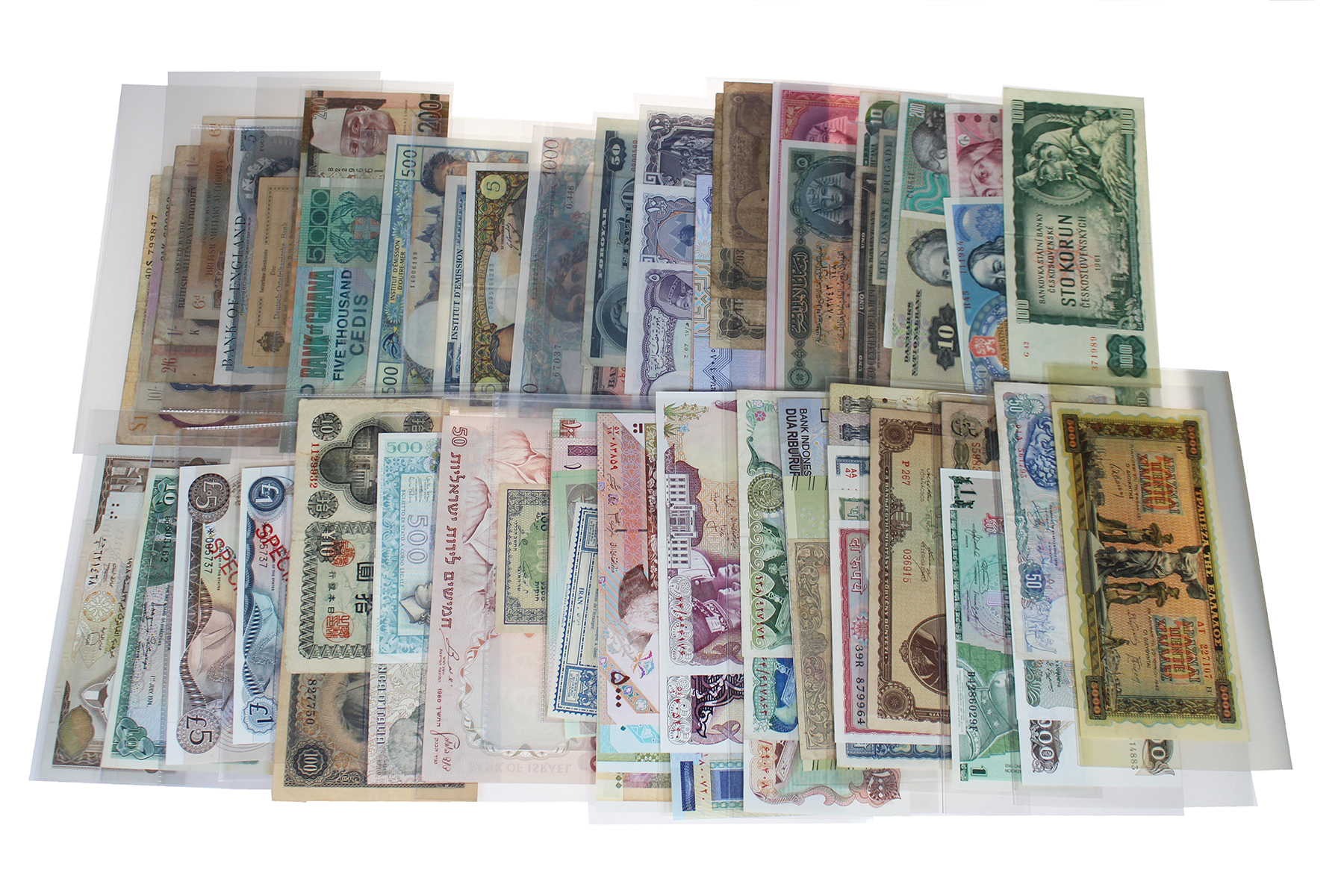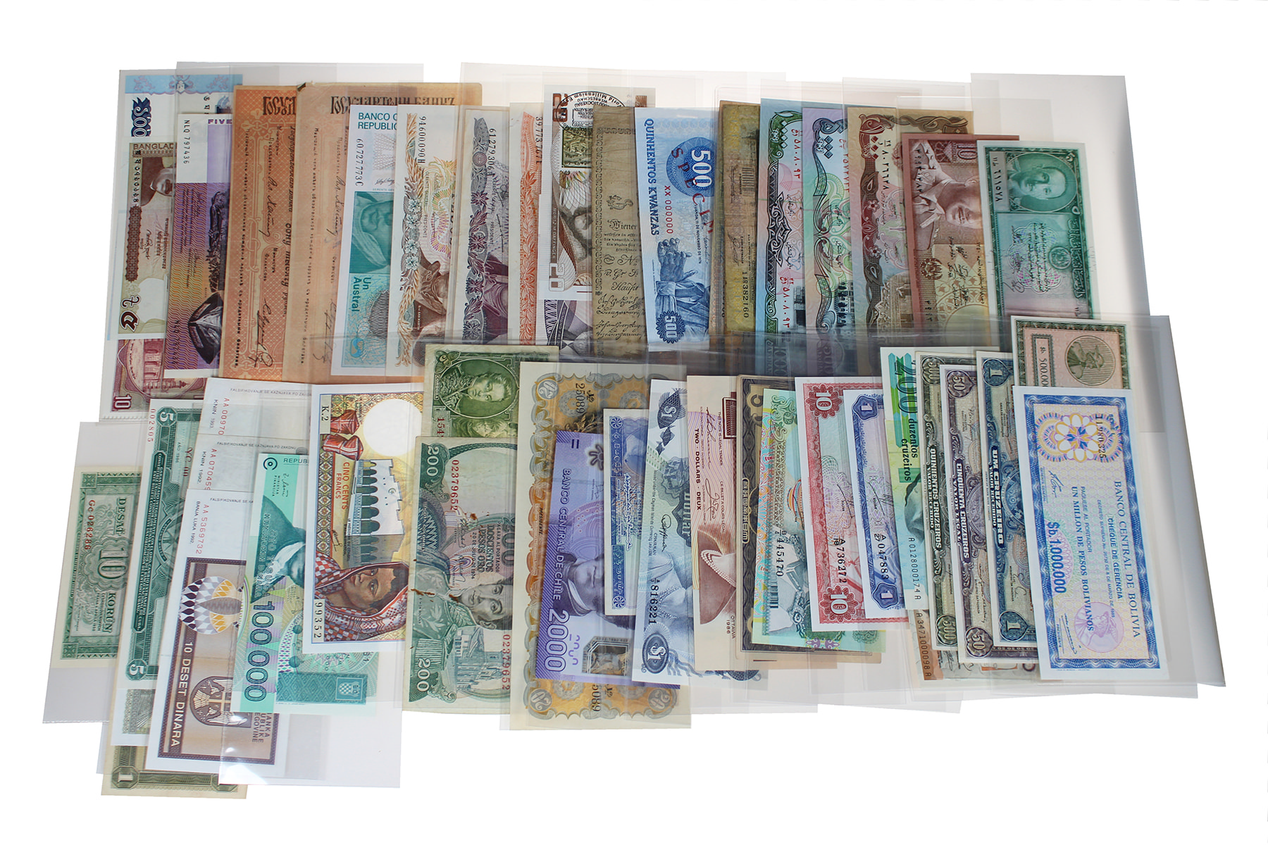 Zwart album met mooie collectie wereldbiljetten van Afghanistan t/m Kenia en Kuwait. Oftewel A t/m K. Alle verschillend in een bovengemiddeld mooie kwaliteit. Ca. 120 stuks. Ook UNC.