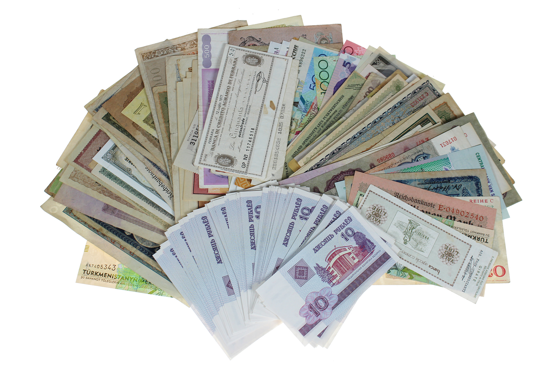 Doosje eenvoudig wereld, w.o. Turkmenistan 50 Elli Manat (Pick 17) 22x; Belarus 20 Rublei (Pick 24) 8x; Belarus 10 Rublei (Pick 23) 92 x en verder veel inflatiegeld en Amerikaanse reclame dollars.