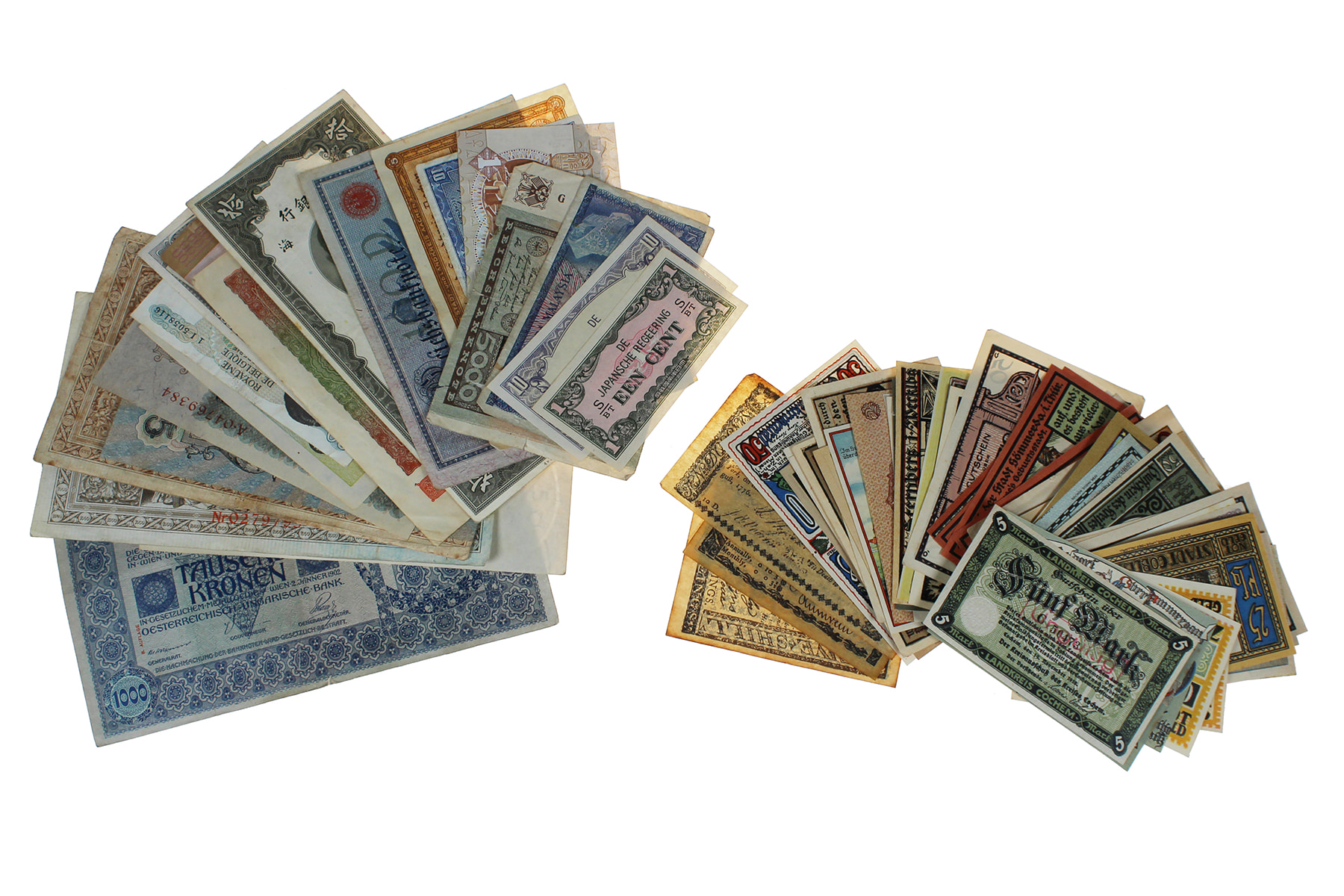 Kistje met onuitgezocht papiergeld allerlei. Kan leuk zijn!