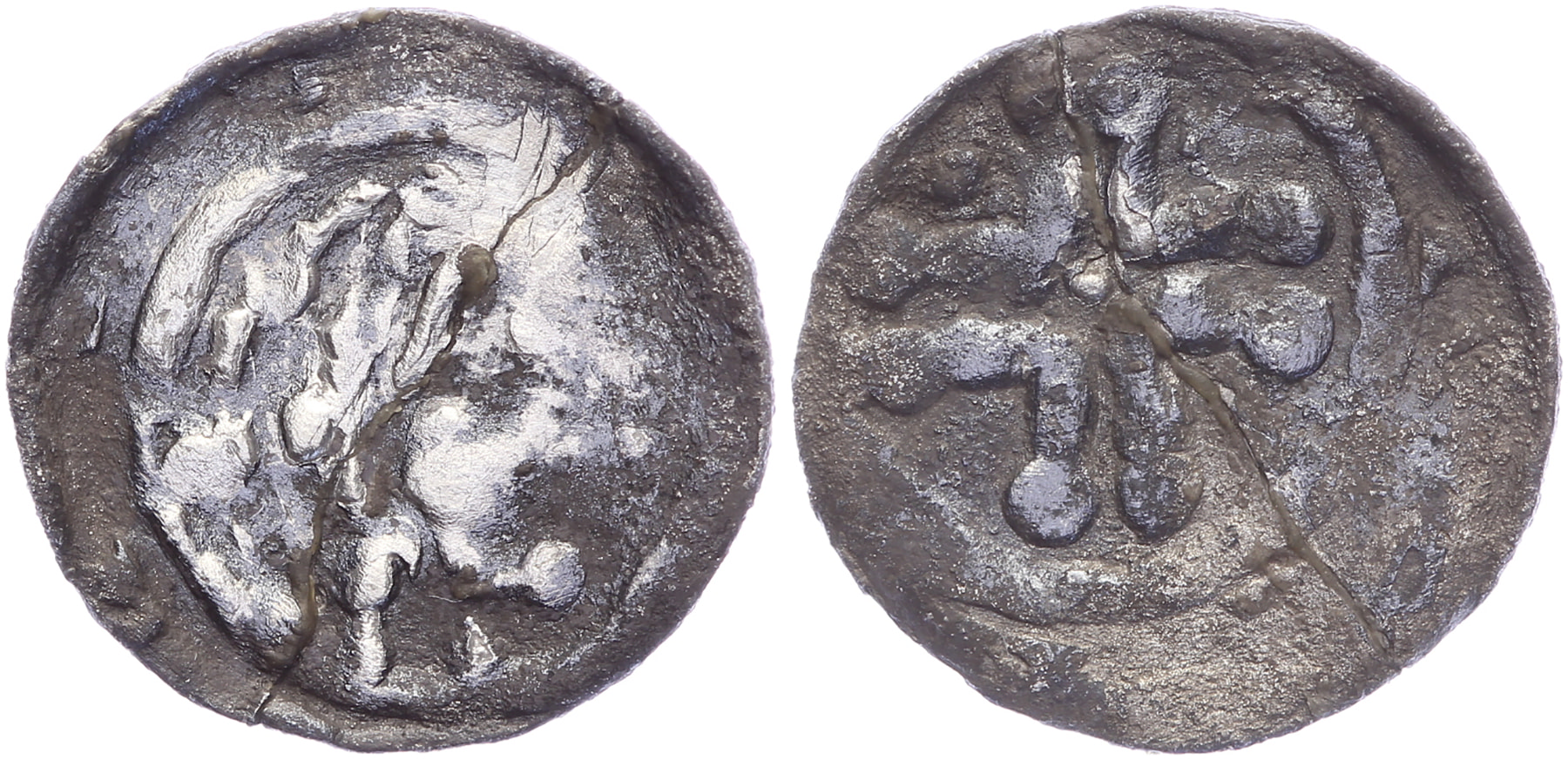 Kopje of denier z.j. Grondvondst te Blija (Fr.) 2007. Gebarsten. Fraai. ⁂