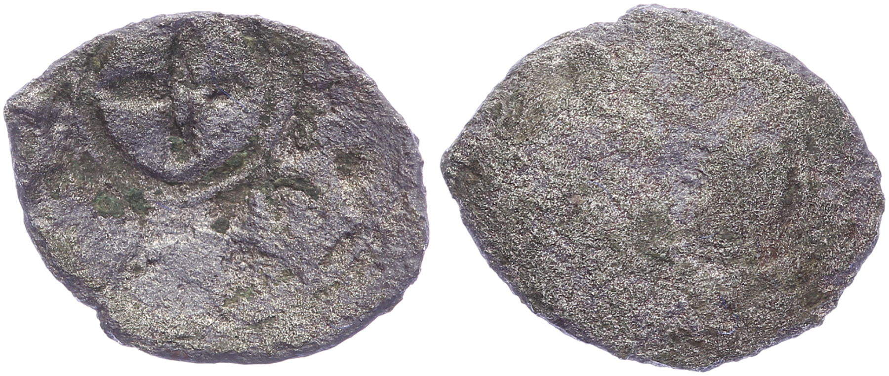 ¼ Obool z.j. Ovaal 8 x 10 mm. Grondvondst Ammeren, nov. 2003. Minder dan fraai. ⁂