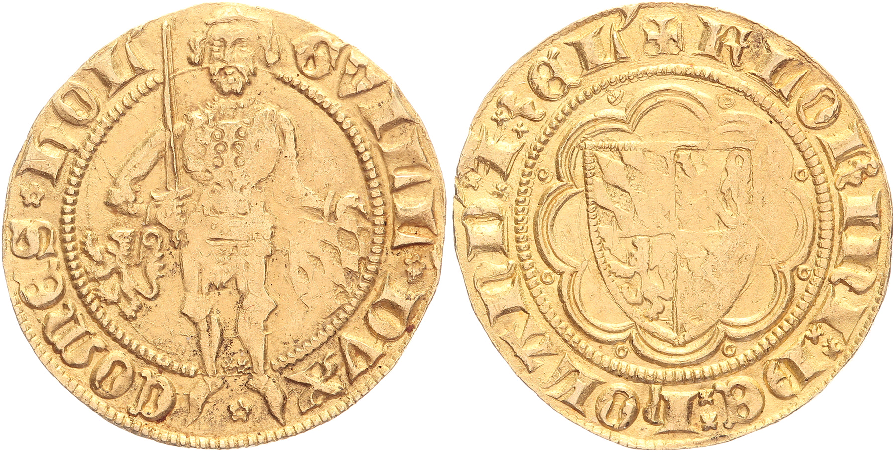 Oude Dordtse- of Wilhelmusgulden z.j., emissie 1378. Grolle 17.9.1Aa; vdCh. 5.7-8; Delm. 725 [3,51 gram]. Zeer fraai.Ex veiling 37, Coin Investment, april 1991, kavel 71