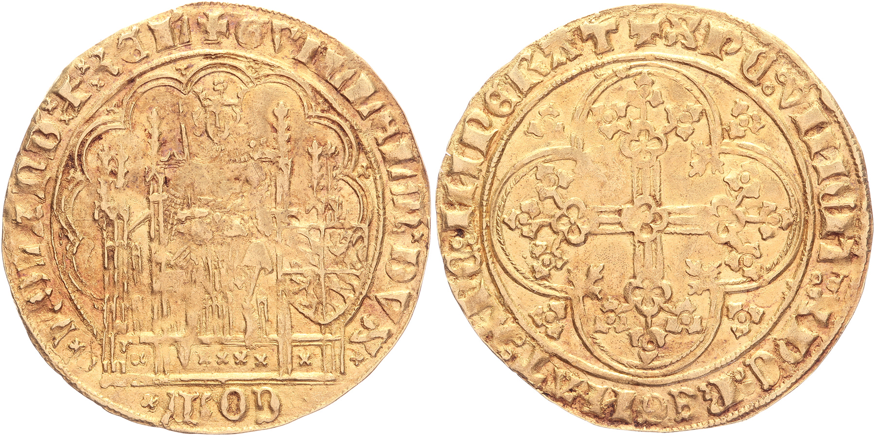 Gouden schild of klinkaart z.j., emissie 1411. Grolle 19.3.2; vdCh. 5.3.; Delm. 731 [3,56 gram]. Bijna zeer fraai.Ex veiling 11, Laurens Schulman, november 1993, kavel 151