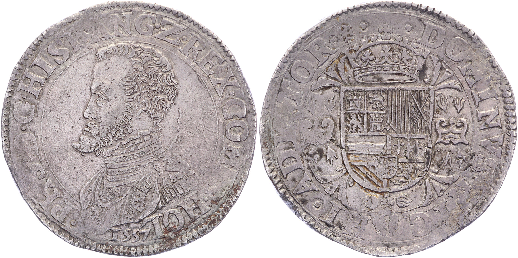 Philipsdaalder 1557. GH 210-11a; Delm. 39; CNM 2.28.11. Zeldzaam. Zeer fraai.Ex veiling 17, Laurens Schulman, november 1996, kavel 220