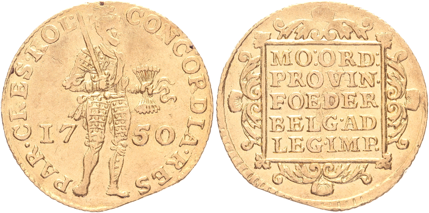 Gouden dukaat 1750. Delm. 775; CNM 2.28.54 [3,43 gram]. Zeer fraai.