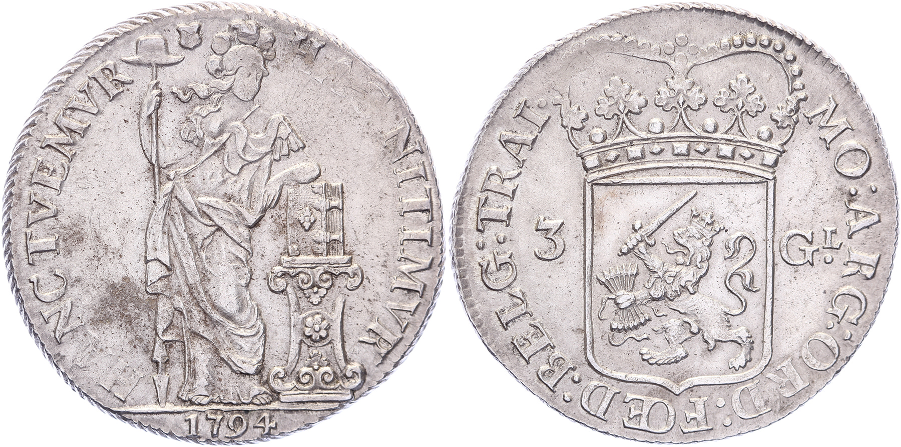 3 Gulden 1794. Delm. 1150; CNM 2.43.117. Ruim prachtig.