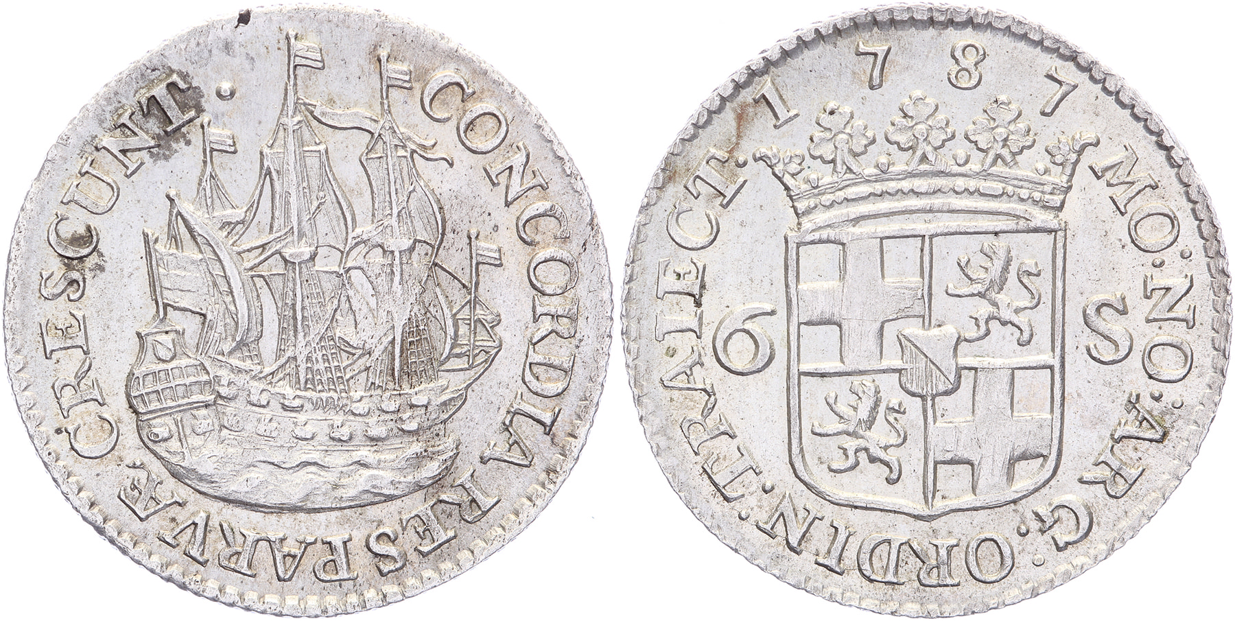 Scheepjesschelling 1787. CNM 2.43.137; HPM 84. Uitzonderlijke kwaliteit! Prachtig.