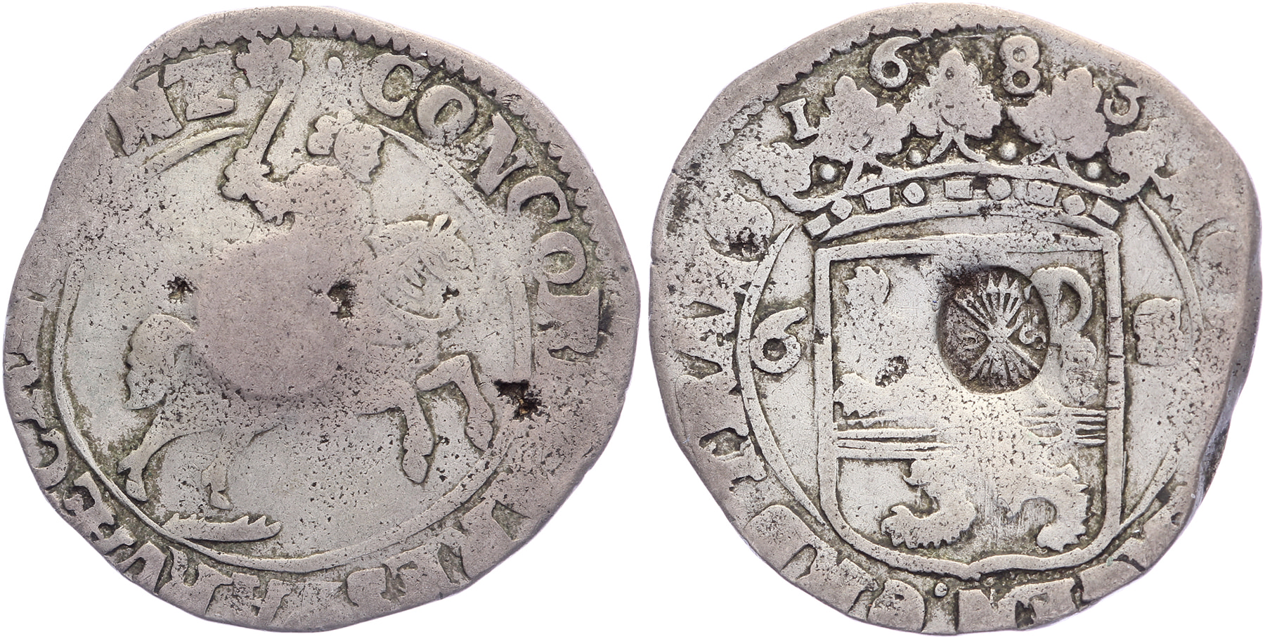 Rijderschelling 1683 met klop A20 van de Staten-Generaal. CNM 2.38.95. Munt: niet best; klop: prachtig.