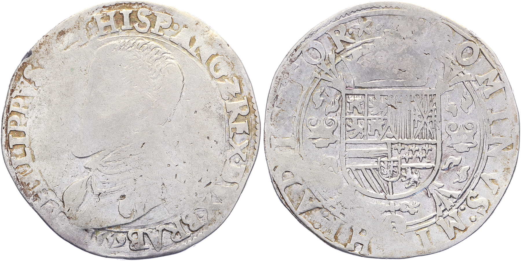 Philipsdaalder 1559, Maastricht. Delm. 19; GH 210-2a; CNM 2.07.7. Minder dan fraai. ⁂