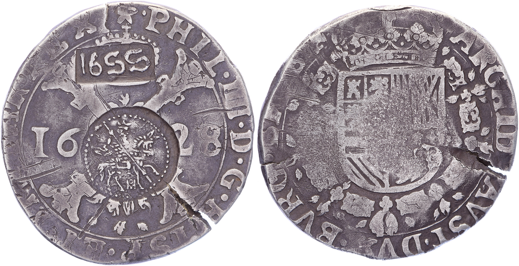 Patagon 1628. GH 329-2, Delm. 294; Vanhoudt 645; CNM 2.07.64. Met klop (twijfelachtig). Slagbarst. Fr. / Zfr. ⁂