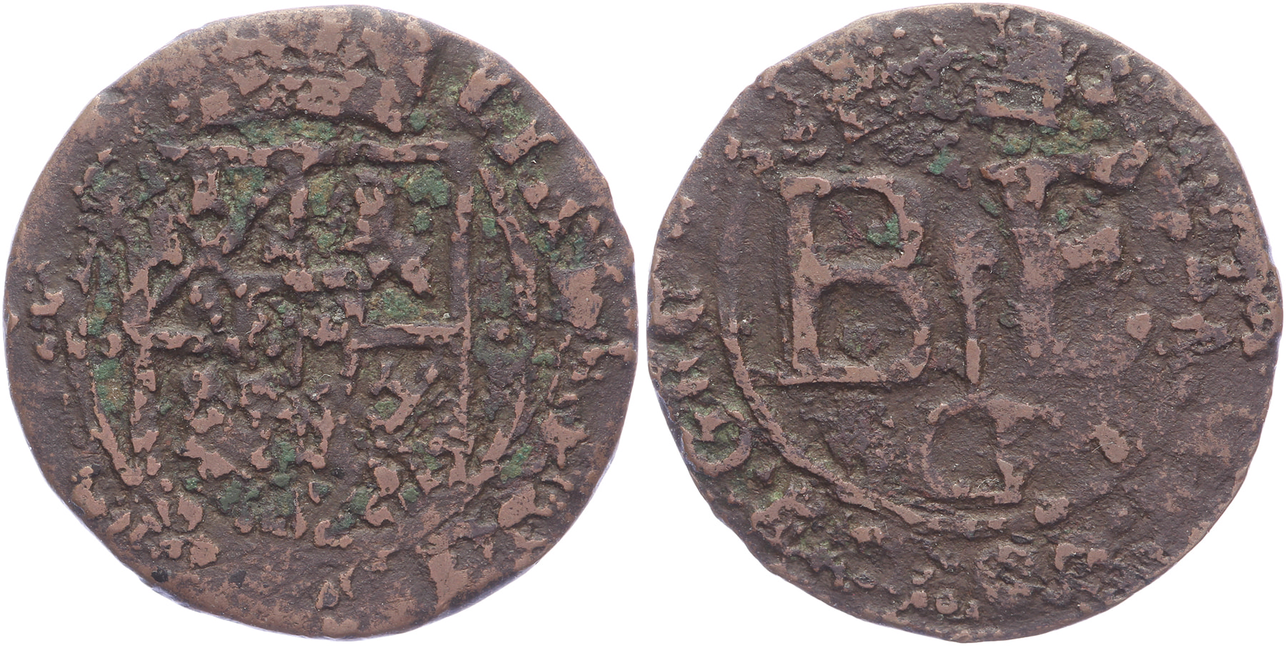 Oord z.j, als type afgebeeld bij Lucas 105. Voorzijde: wapen met Bronkhorst in 1 en 4, Batenburg (leeuwen naar links) in 2 en 3, maar gedekt met Gronsveld-Eberstein. Lucas – (vgl.105); Van Daalen -; PW 9119-var; CNM -. Onbeschreven in literatuur met dit wapenschild. Zeer zeldzaam (RR). Zeer goed. ⁂