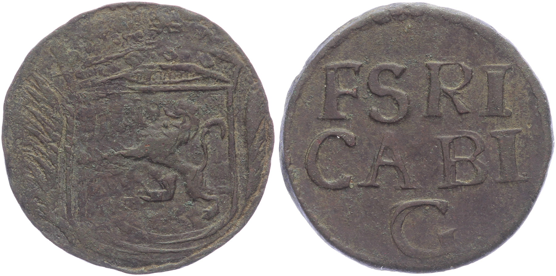Duit z.j. voorzijde: gekroond wapen van Bronkhorst met aan weerszijden een palmtak, keerzijde: opschrift binnen parelcirkel. Lucas 145; Van Daalen 59; PW 9124.3; CNM 2.22.120. Zeer fraai. ⁂