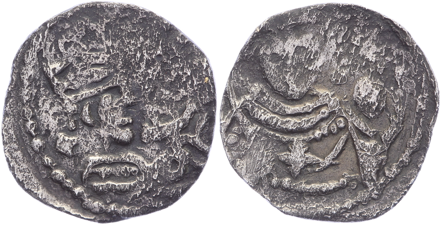 Denier z.j. Maastricht [0,79 gram] Buste naar rechts met mijter / Buste keizer en face met rijksappel en kruis op de borst. Dengis 342 (in de laatste uitgave is dit exemplaar afgebeeld). Enig bekende exemplaar. Van de allerhoogste zeldzaamheid (RRRR). Fraai / Zeer fraai. ⁂N.B. De rijksappel geeft aan: keizer, het kruis geeft aan dat de keizer op kruistocht is gegaan. Dit bepaalt (we volgen hier Dengis) de datering op: 1147-1152. Deze munt is in Maastricht gevonden door de heer Peusens. Dit is het enige bekende exemplaar.