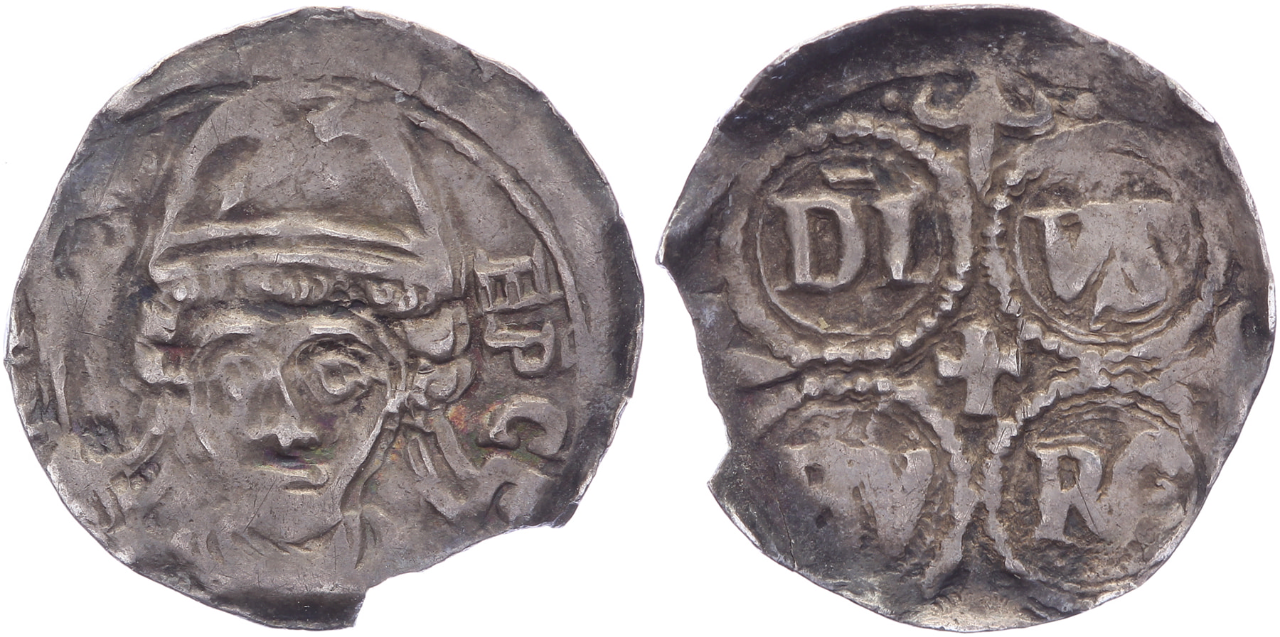 Denier z.j. Maastricht (voor 1186) Met DI-VS-BV-RG [0,79 gram]. Chestret 130; Dengis 378; Vanhoudt G813. Zeldzaam. (R). Bijna zeer fraai. ⁂Ex veiling Schulman, veiling 363 kavel 1369