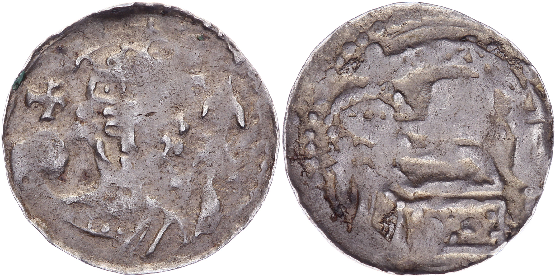 Denier z.j. Maastricht met op de voorzijde de keizer (Frederik Barbossa) en face en sleutel boven een kist op de keerzijde. Dengis 383; Vanhoudt G820. Dengis vermeld slechts 4 exemplaren. Uiterst zeldzaam (RRR). Fraai. ⁂Ex veiling Schulman, veiling 364, kavel 877