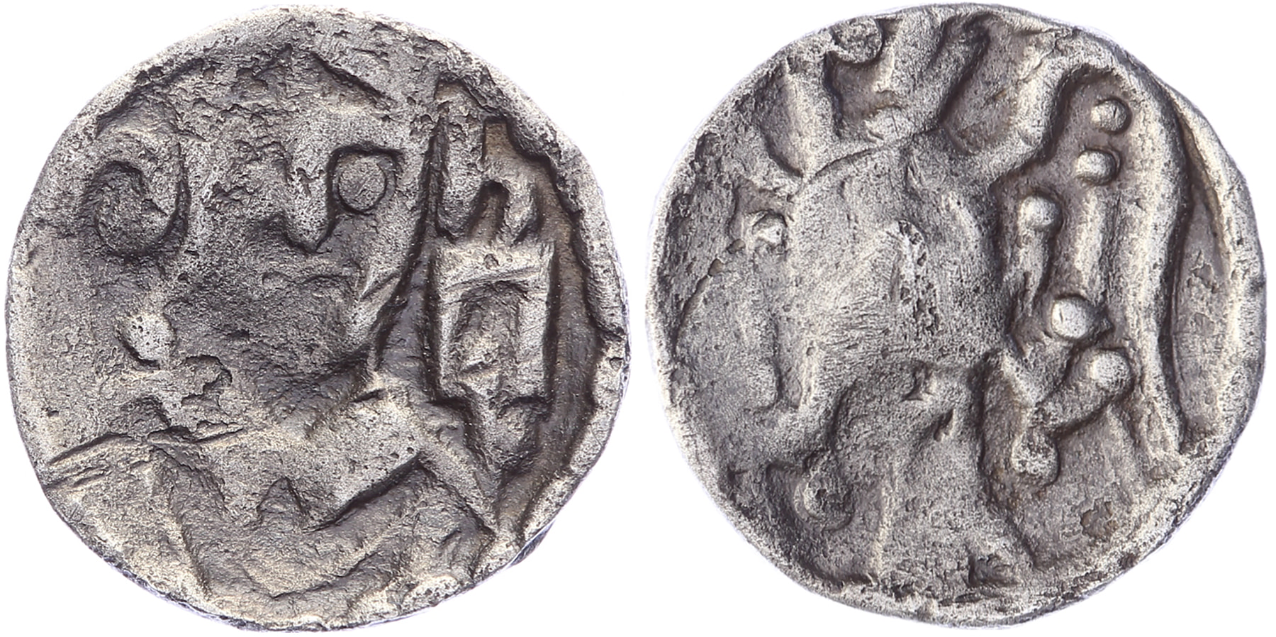 Denier z.j. Maastricht, variant met bolletjes op borst en vleugels van adelaar op keerzijde. Chestret 179; Dengis 491. Zeldaam (R). Bijna zeer fraai. ⁂