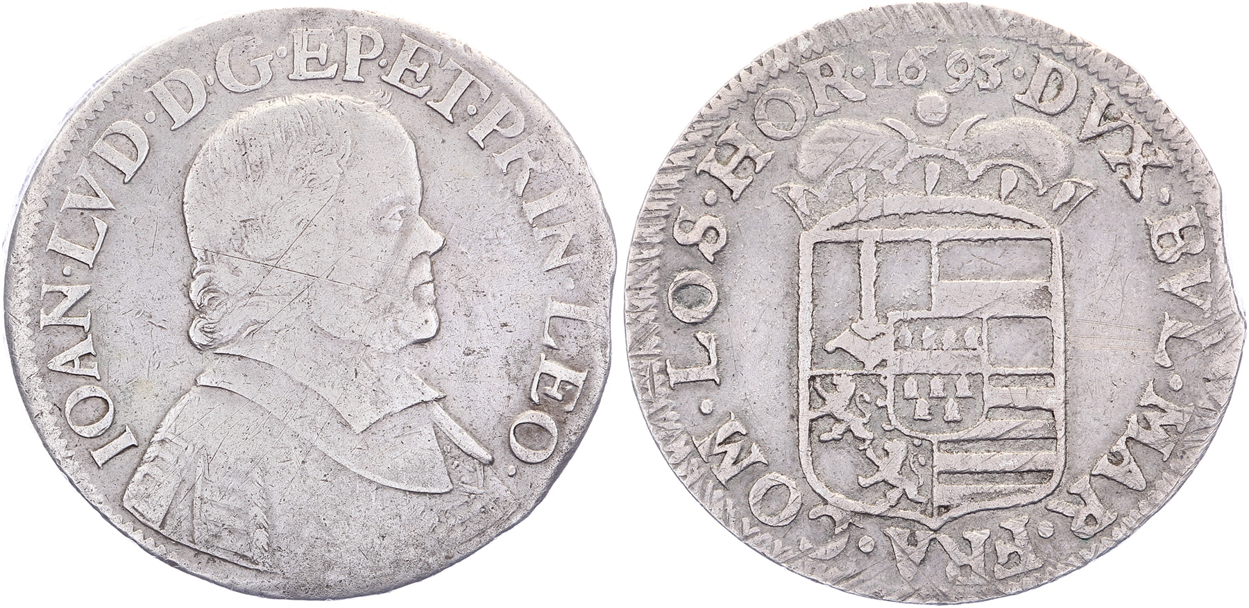 Patagon 1693. Delm. 478; deCh. 654; Dengis 1124. Lichte justeersporen vz. + kz.; geklipt. Fraai. ⁂