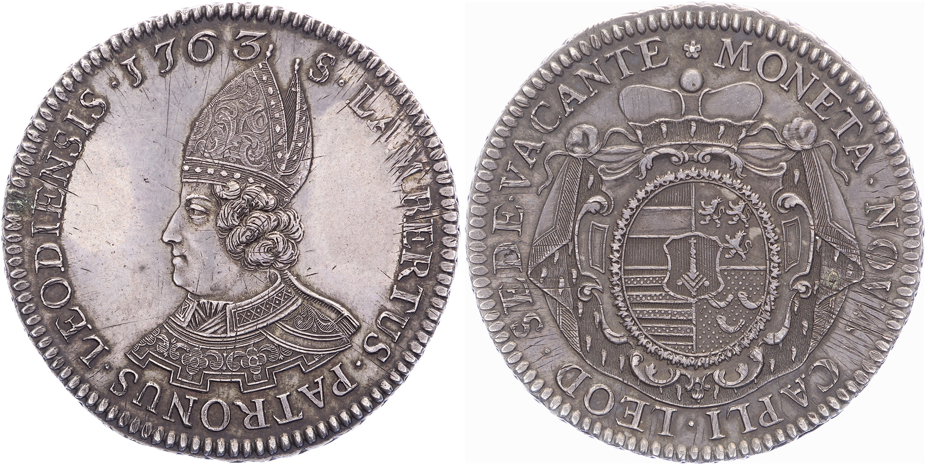 St. Lambertdaalder 1763. Delm. 487; deCh. 694; Dengis 1184. Lichte justeersporen kz. Zeer zeldzaam. Prachtig. ⁂