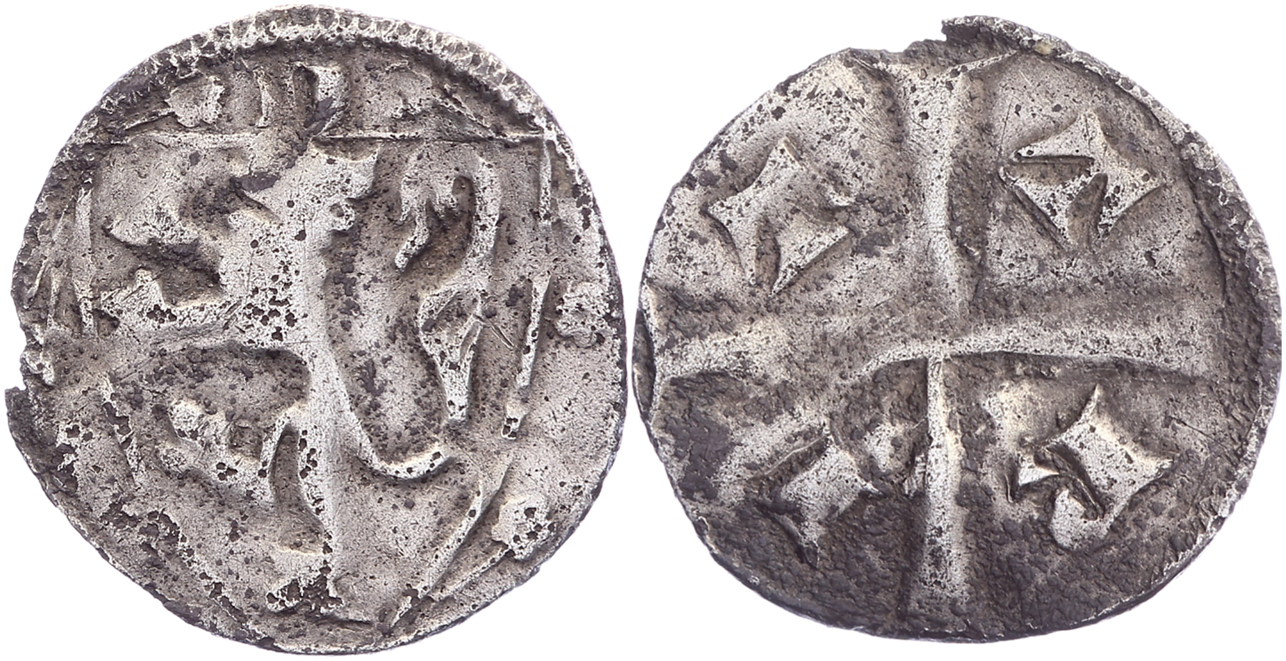 Denier z.j. De Witte 210; De Mey 106; Vanhoudt G180. Zeer zeldzaam (RR). Iets corrosie. Zeer fraai. ⁂