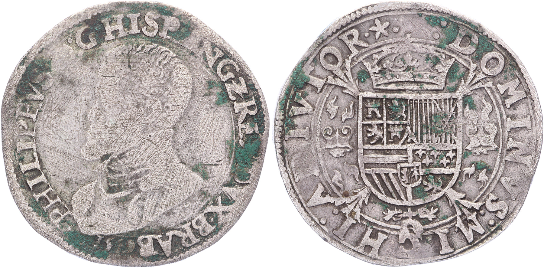 Philipsdaalder 1559, met titel van Engeland, borstbeeld naar links, naam voluit (Philippvs), muntteken ster op keerzijde. GH 210-2a; Delm. 19 (R2); Vanhoudt 253 (R2); CNM 2.07.7. Zeer zeldzaam (RR). Fraai. ⁂