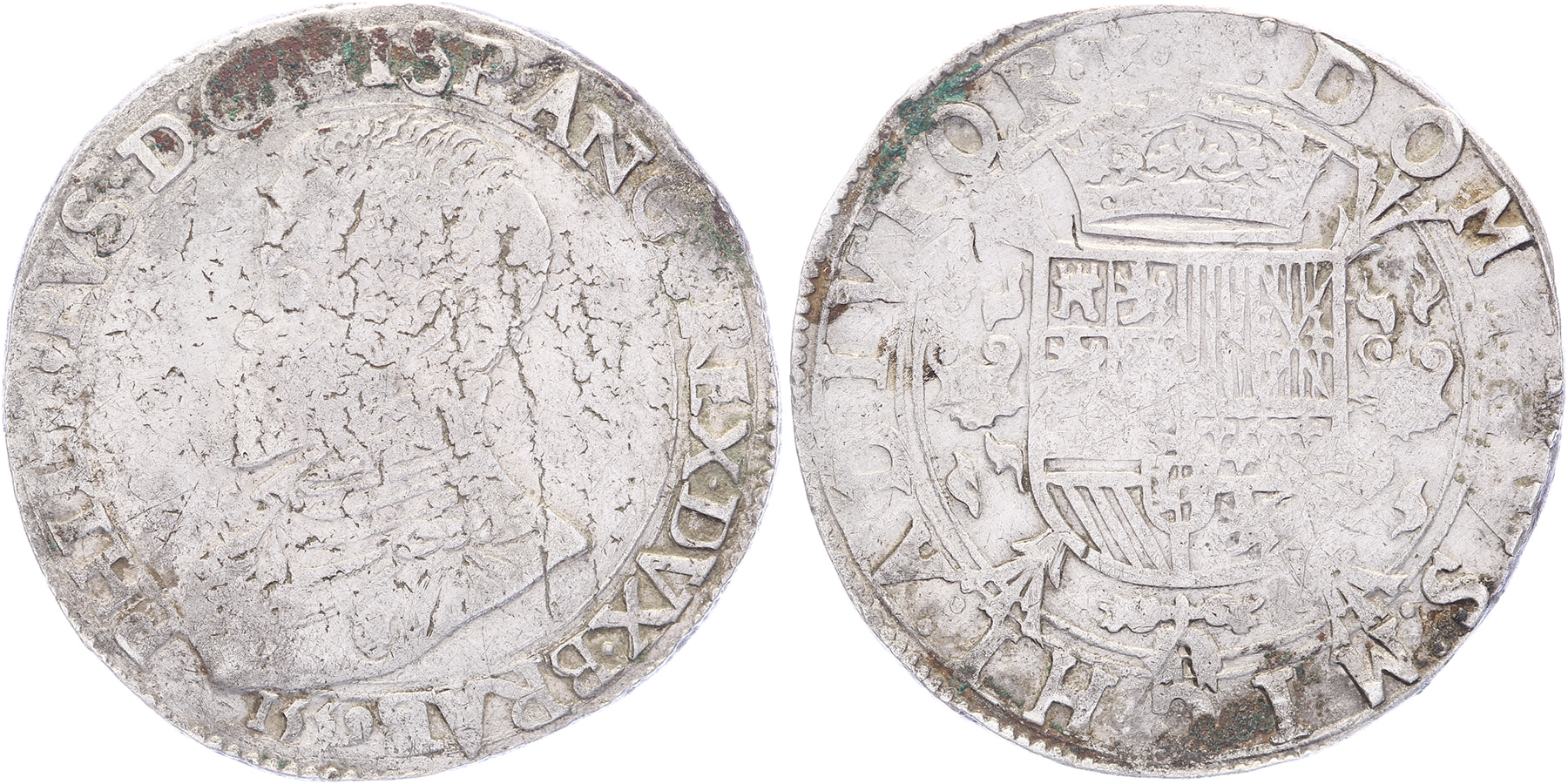 Philipsdaalder 1559, met titel van Engeland, borstbeeld naar links, naam voluit (Philippvs), muntteken ster op keerzijde. GH 210-2a; Delm. 19 (R2); Vanhoudt 253 (R2); CNM 2.07.7. Zeer zeldzaam (RR). Amper fraai. ⁂