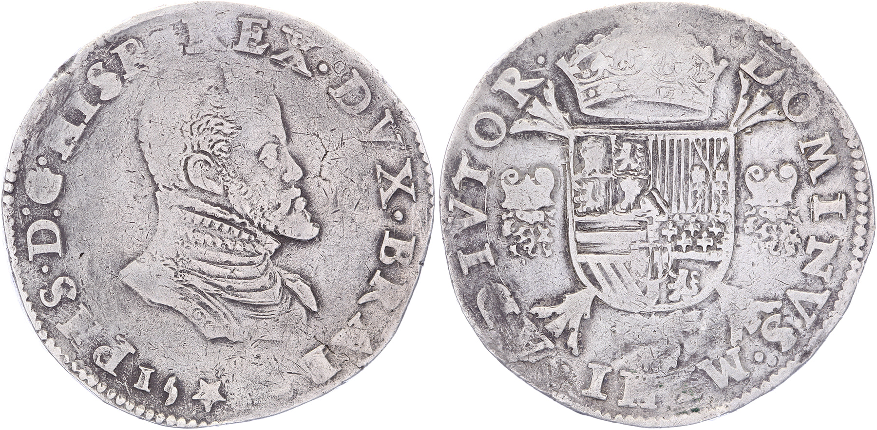 Philipsdaalder 1562 of 1563, borstbeeld naar rechts, muntteken ster op voorzijde. Laatste twee cijfers van jaartal niet leesbaar. GH –; Delm. -; Vanhoudt 266 (R4); CNM 2.07.11. Van de hoogste zeldzaamheid (RRRR). Fraai / Zeer fraai. ⁂