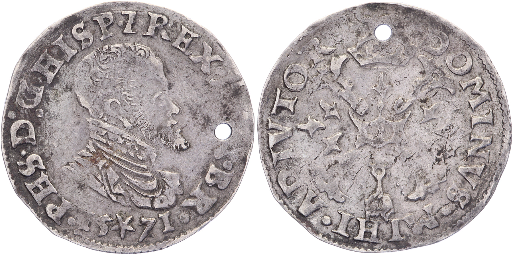 1/10 Philipsdaalder 1571. GH 213-2b; Vanhoudt 308; CNM 2.07.20. Gaatje. Zeer fraai. ⁂
