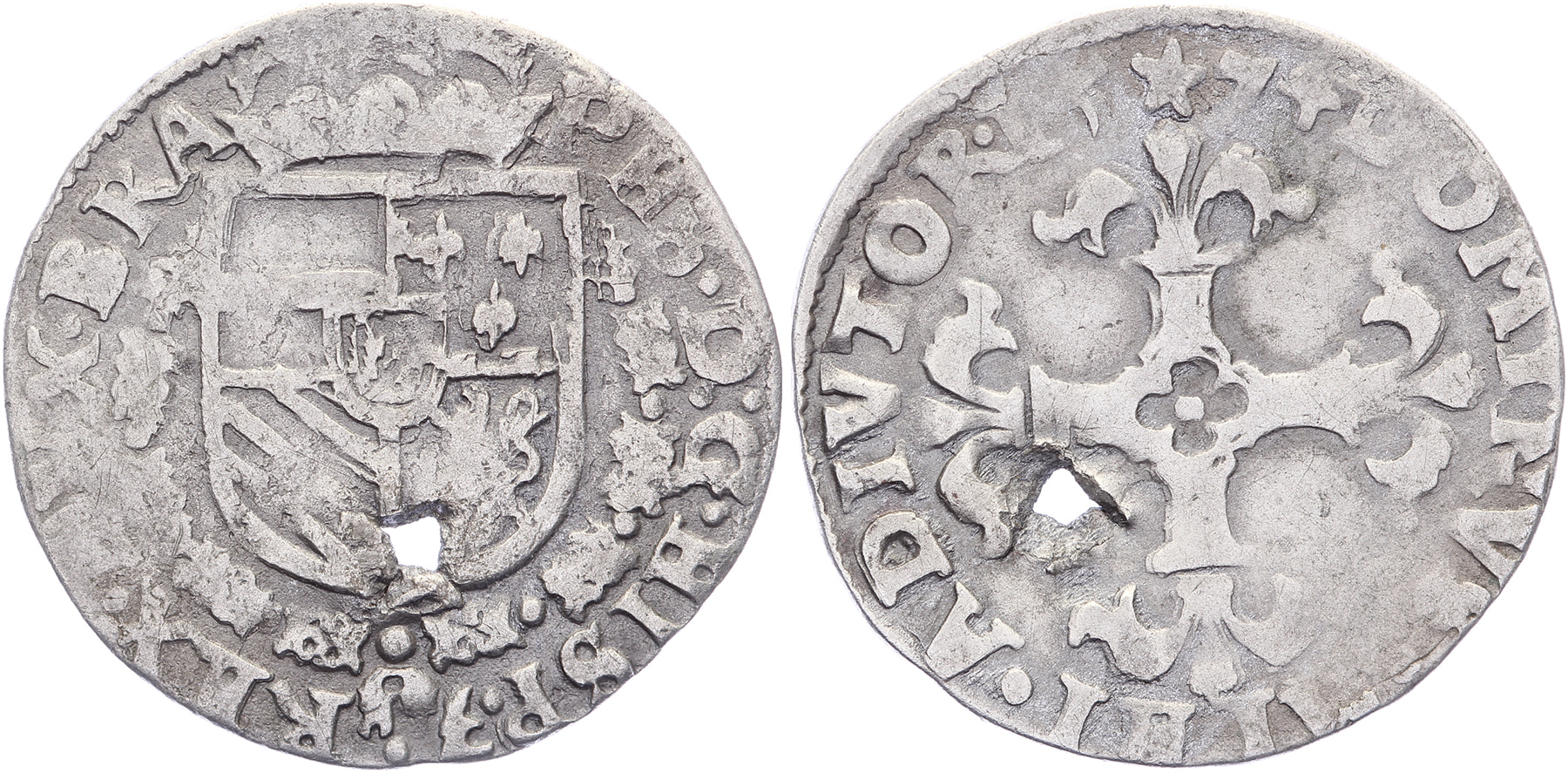 1/20 Philipsdaalder 1574. GH 215-2a; Vanhoudt 310 (R1); CNM 2.07.21. Zeldzaam (R). Met gat. Fraai / Zeer fraai. ⁂