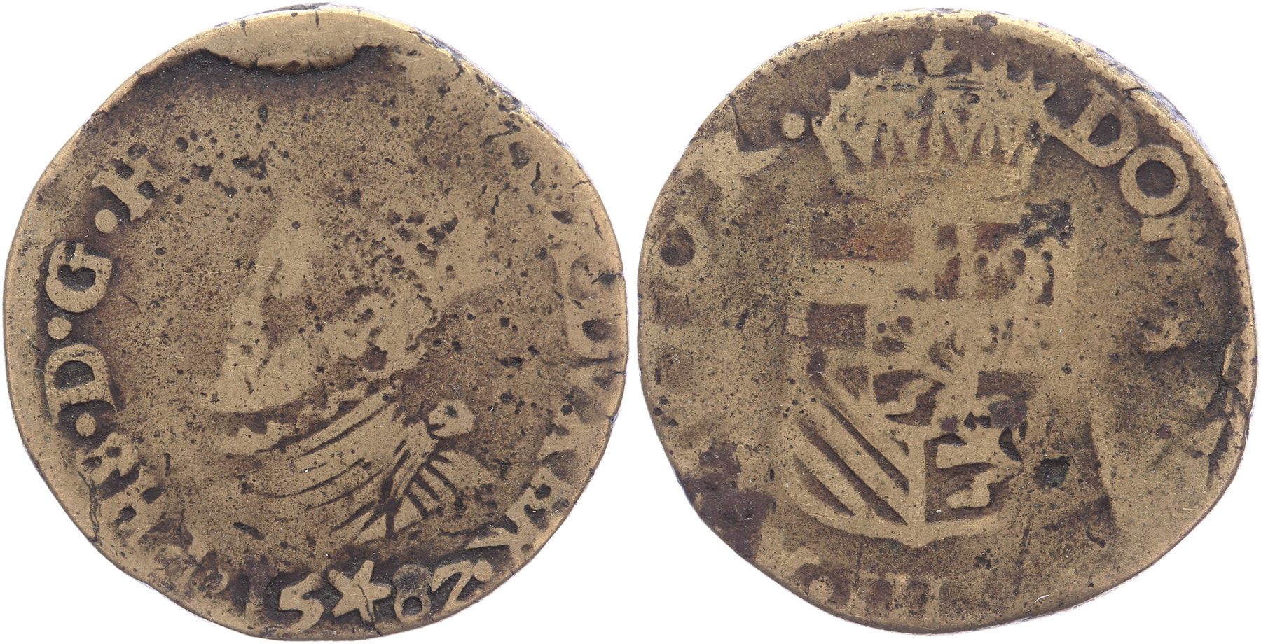 Oord 1582, messing. GH 232-2; Vanhoudt 321; PW 9308; CNM 2.07.28. Ruim fraai. ⁂